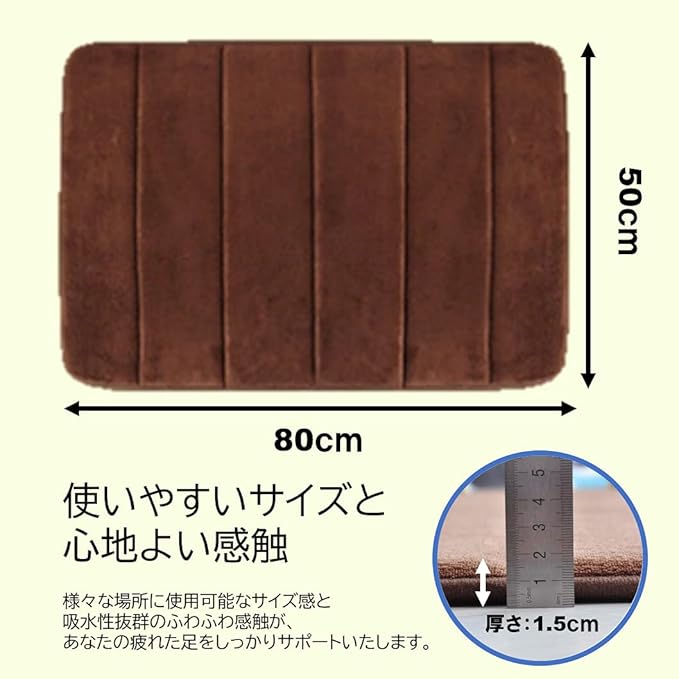【3層構造】さわり心地の良いふわふわの表面生地、低反発のウレタンクッション、地面をがっちりホールドするPVCの滑り止め素材が、あなたの足を優しく包み込みます。
