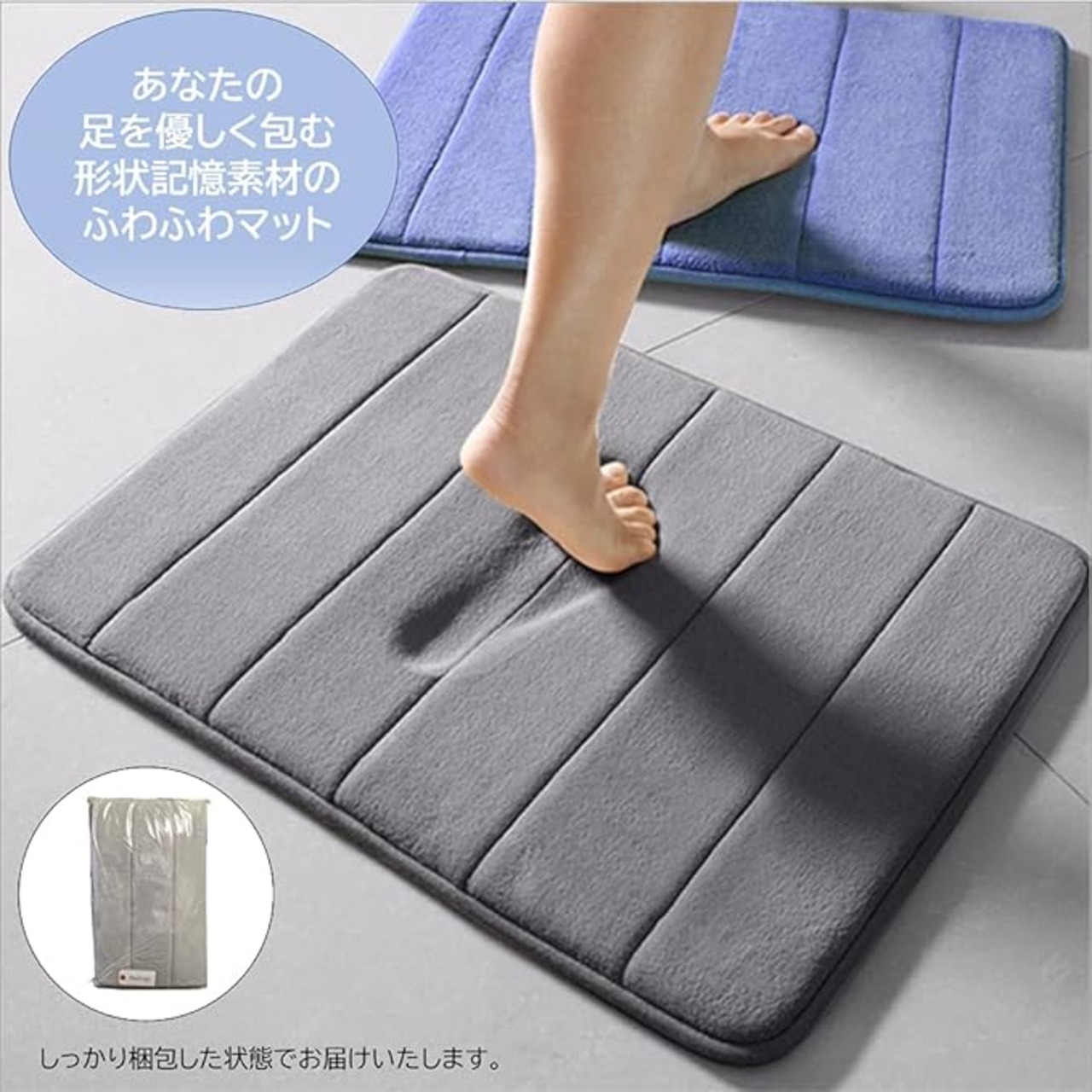 BossLogy バスマット 風呂マット 低反発 ふわふわ 速乾 吸水 滑り止め付き 丸洗い 洗濯可能 床暖房対応 台所 キッチン お風呂 バスルーム 玄関 ペット用 50 80cm (ブルー)