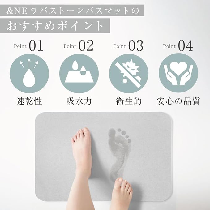 アンドエヌイー(&NE) 溶岩石 バスマット ラバストーン 溶岩石バスマット ハード マット 珪藻土に代わる新素材 吸水 速乾 抗菌 防臭 おしゃれ ホワイト NEO-209-WH