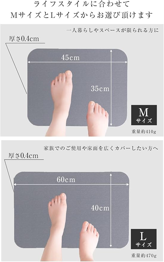 Lava Life 溶岩石ソフトバスマット 速乾 珪藻土越える吸水スピード OLA-SBML025 GY (L, グレー)