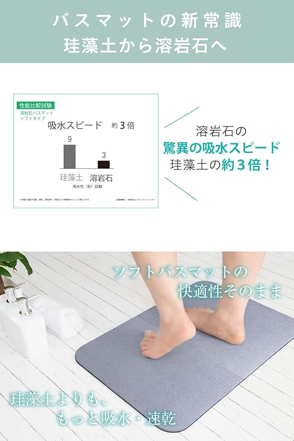 ✅バスマットは次の時代へ。Lava Lifeは次世代の素材”溶岩石(火山岩)”を使ったバスマットです。表面には小さな穴が無数空いており、水分の吸収や放出、消臭の機能に優れています。