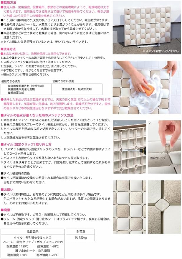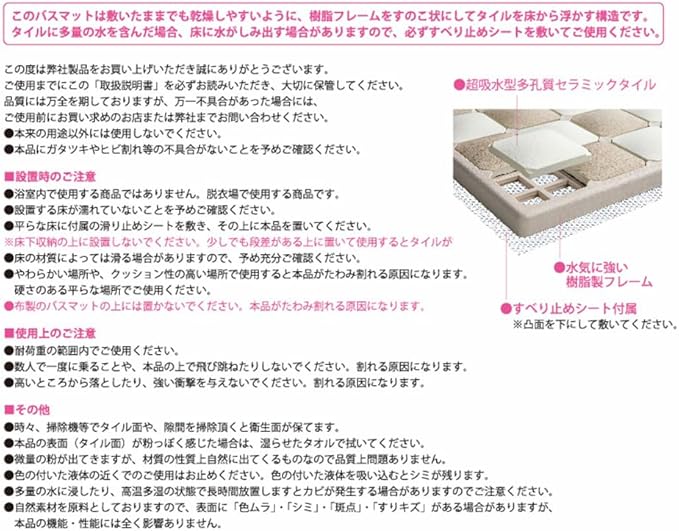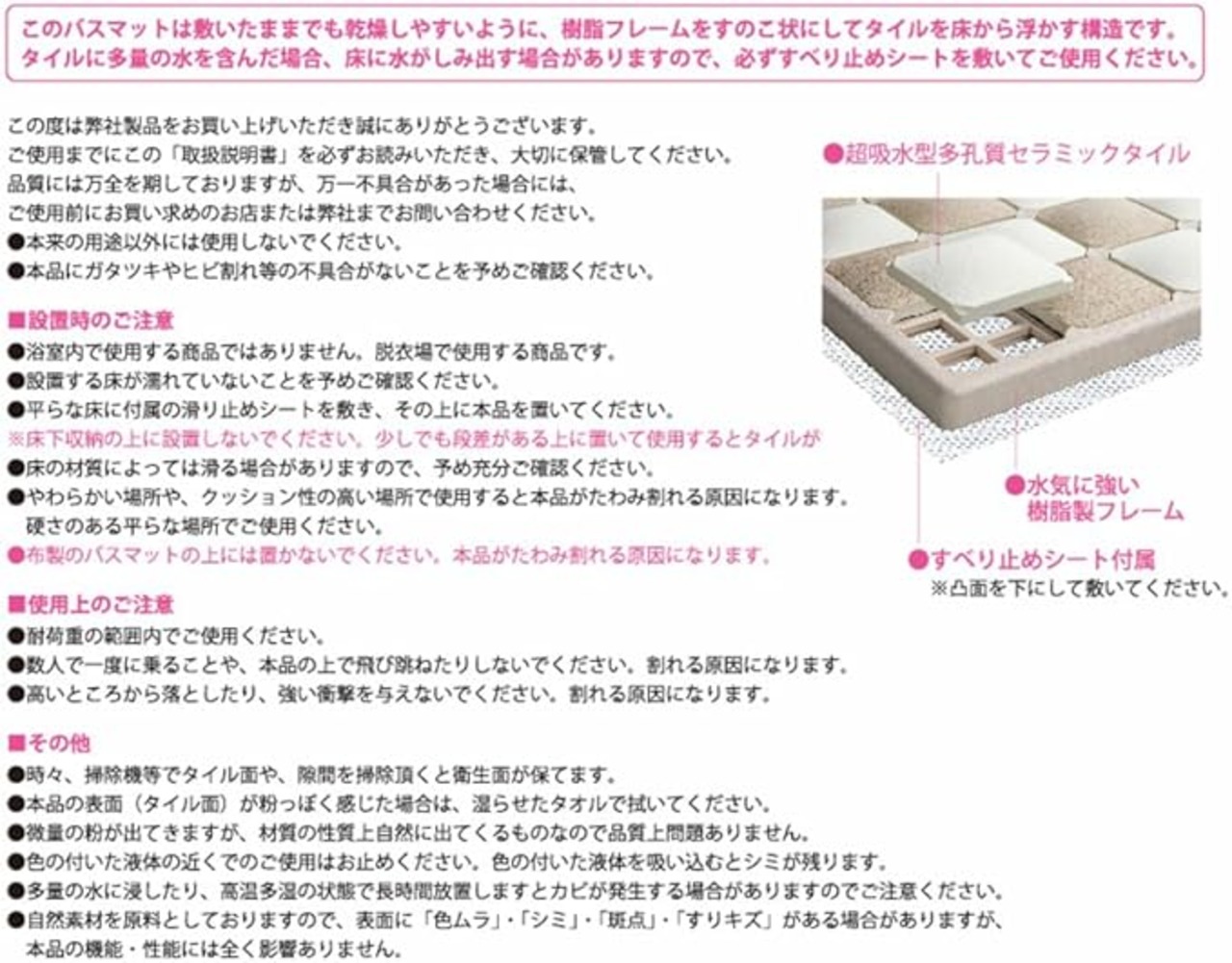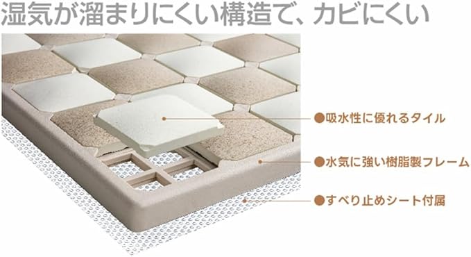 素材・材質: タイル/多孔質セラミック、フレーム・ピン/ポリプロピレン、すべり止めシート/EVA樹脂