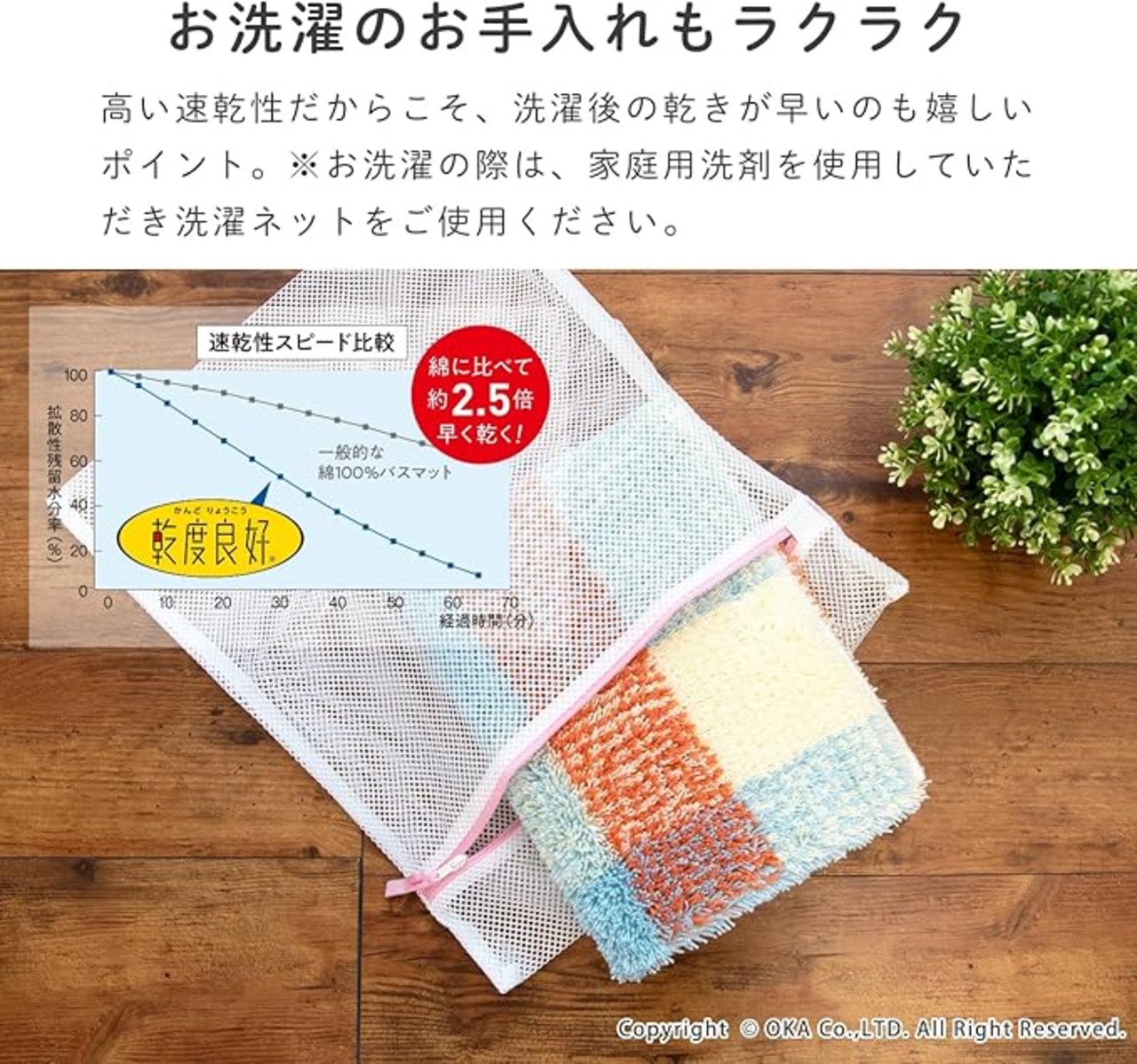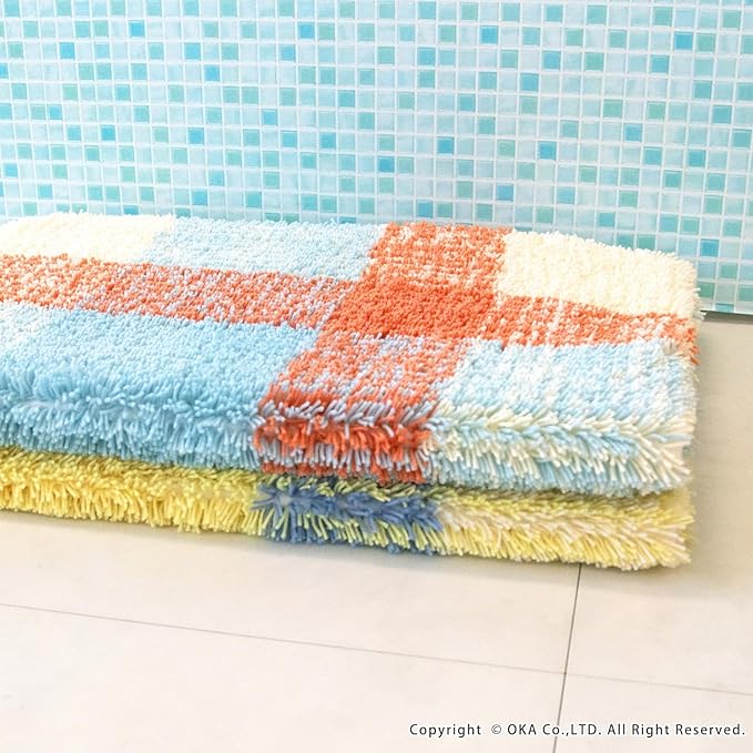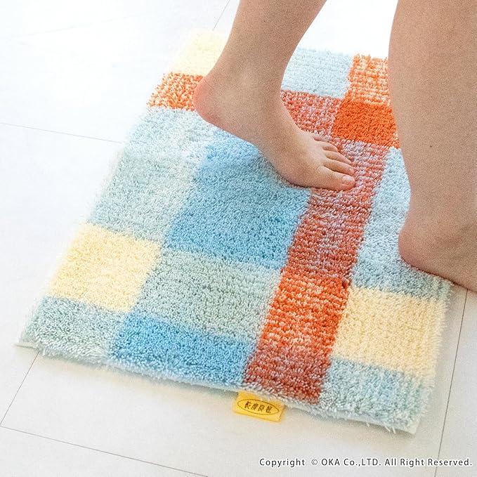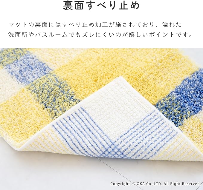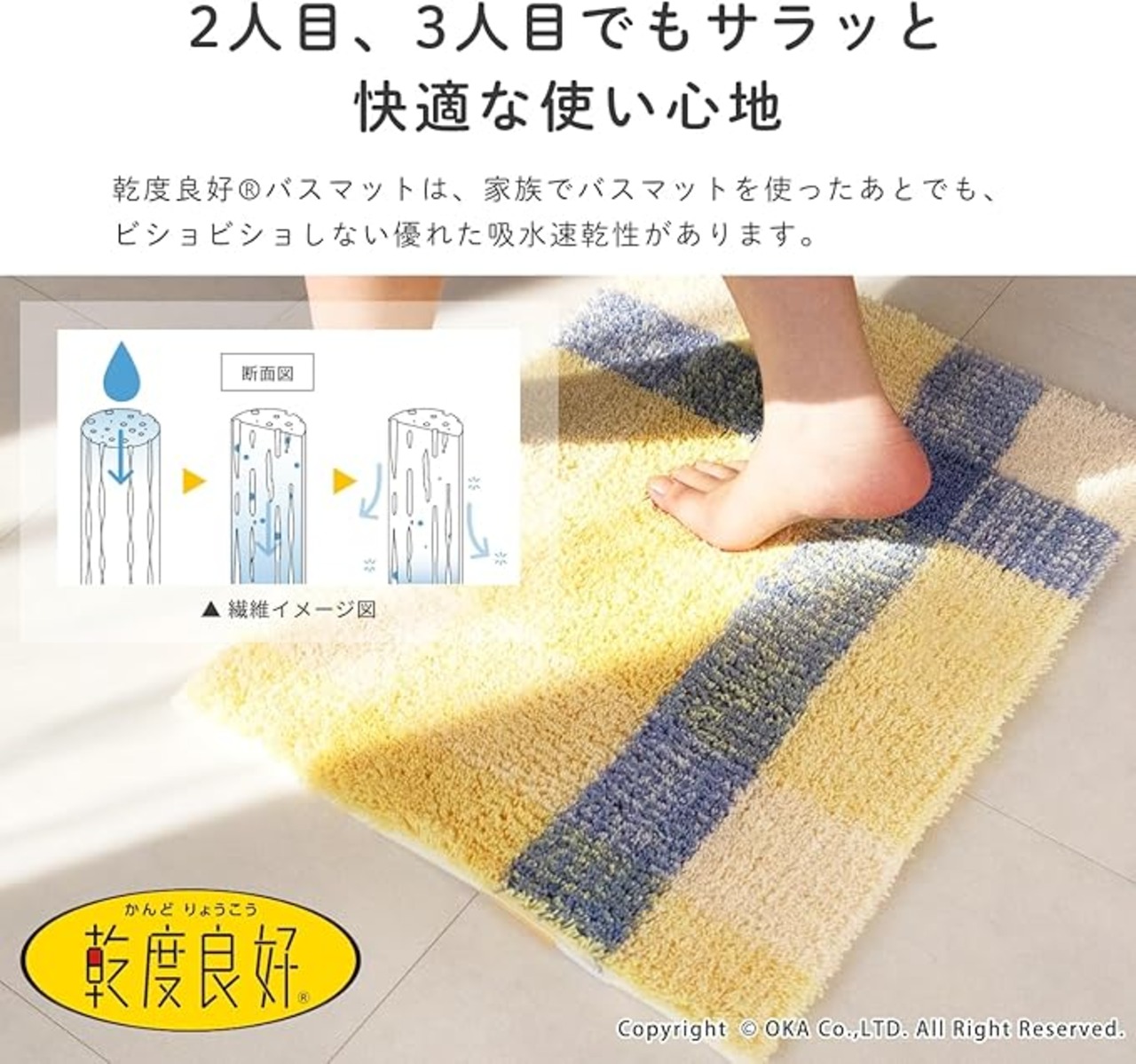 オカ(OKA) 乾度良好リアン バスマット 約45cm 60cm ブルー (吸水 速乾 足ふきマット 北欧 抗菌 防臭)