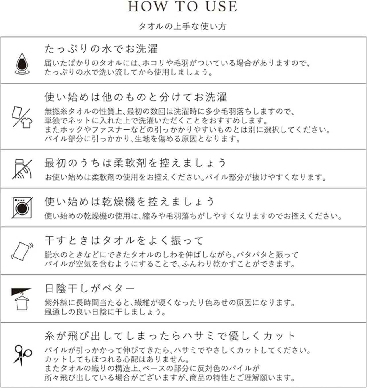 ■タオルの性質上お使い始めは多少毛羽落ちしますので単独でネットに入れた上で洗濯頂く事をお勧めします。