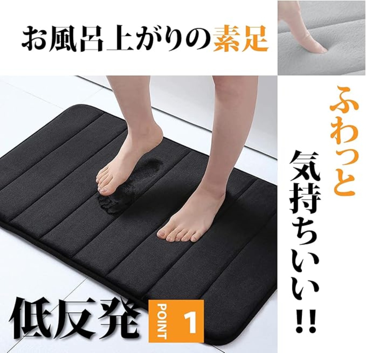 【圧倒的な吸水・速乾】超吸収性マイクロファイバーは、ふわっとしたソフトな踏み心地。素早く水分を吸収し、中材は細かい孔があり空気が通りやすいので速乾性を実現できます。