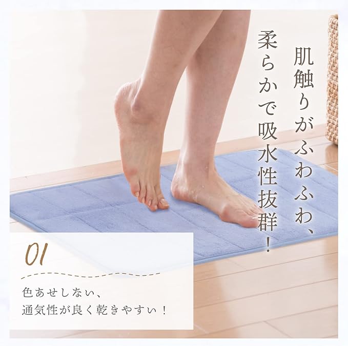 Amazing Harmony バスマット 足ふきマット お風呂マット 低反発 ふんわり ふわふわ 滑り止め 吸水性・速乾性 60x40cm 丸洗い 風呂 浴室 台所 洗面台 脱衣場 キッチン 玄関 (ピンク)