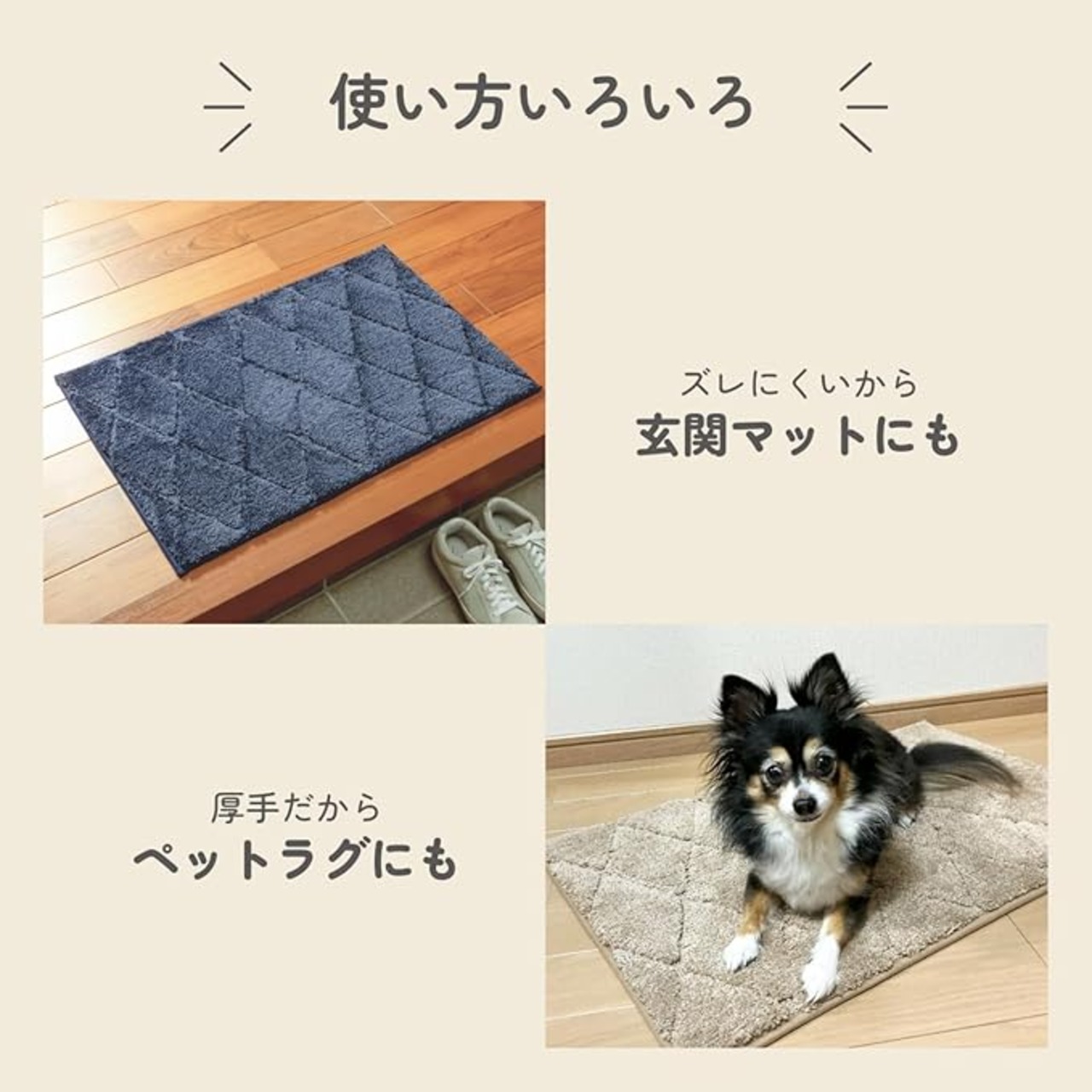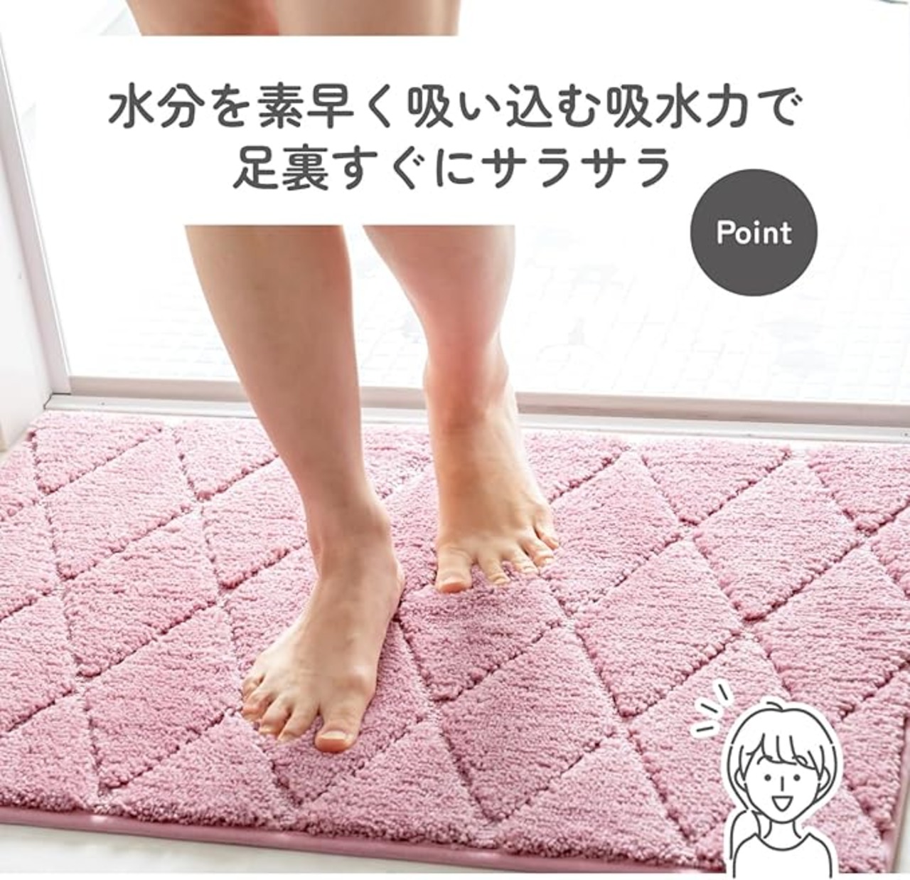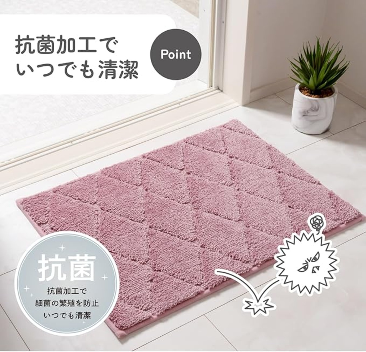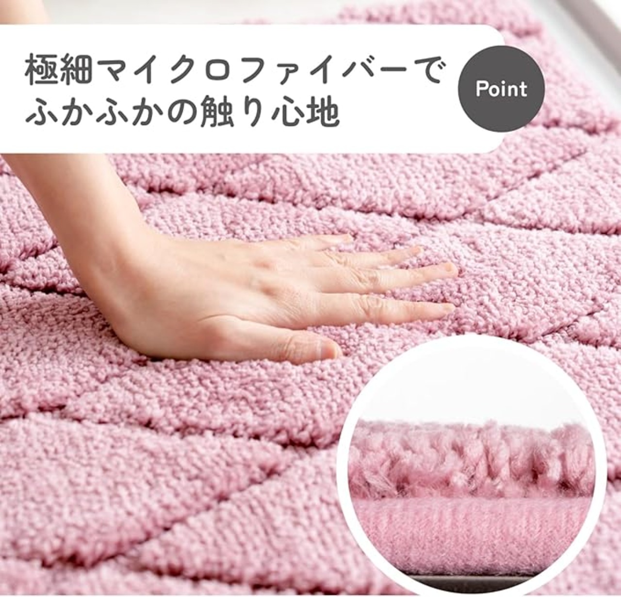 ●特殊スベリ止め加工で、掃除機をかけてもズレにくいバスマットです。床暖房対応◎