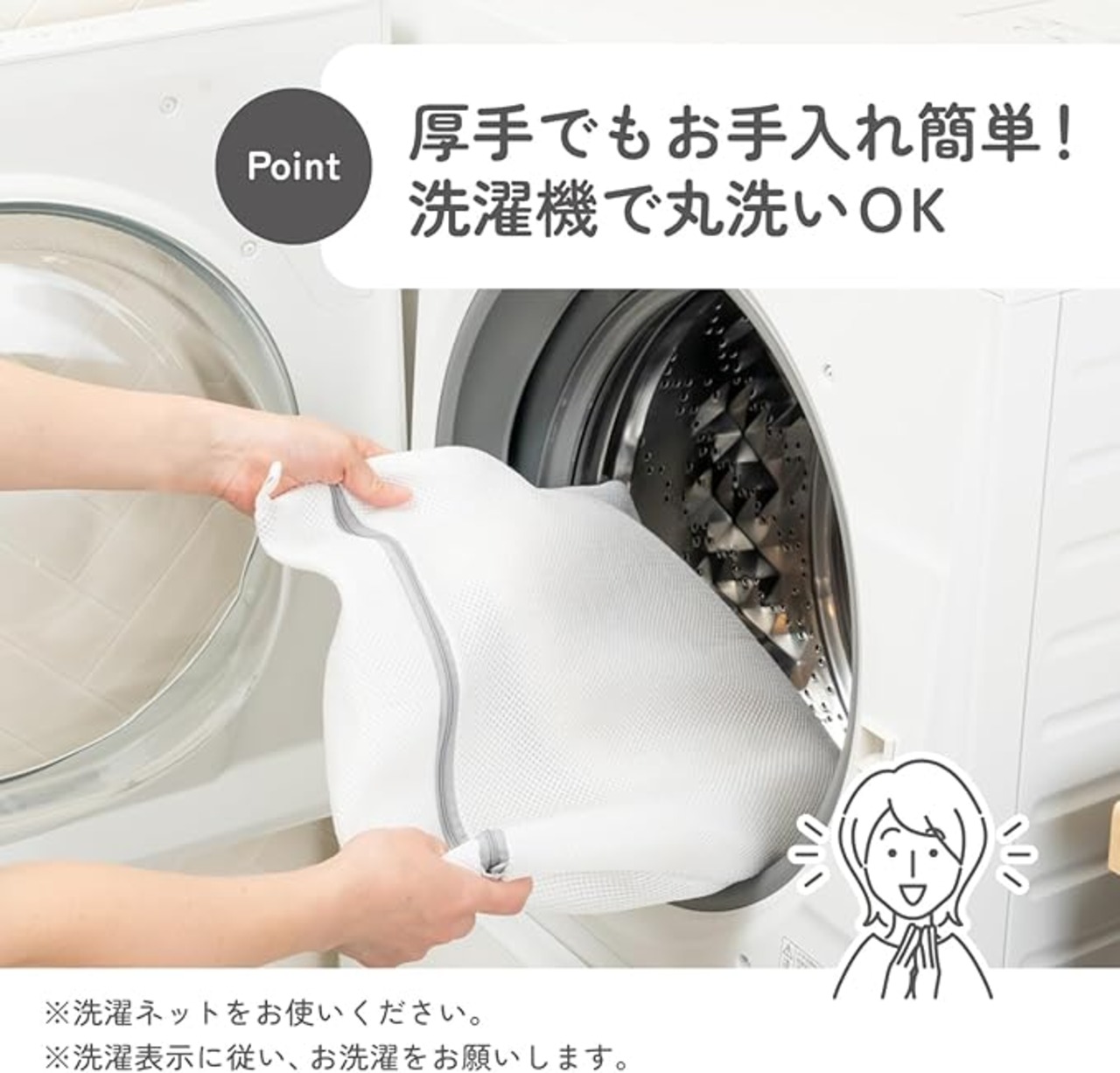 ●洗濯機で丸洗いができ繰り返しご使用いただけます。