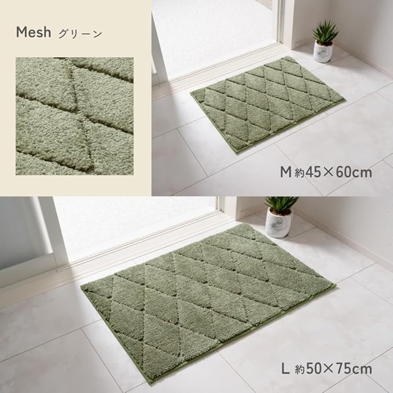 カキウチ(Kakiuchi) バスマット L 幅75cm 奥行50cm 高さ1cm グリーン Ag抗菌加工 特殊 滑り止め加工 床暖房対応 洗濯しやすい ズレSTRONG テルマエ