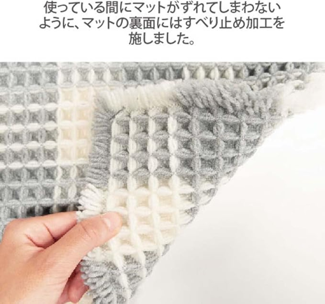抗菌・消臭加工付きで菌やニオイをブロック。選択後も効果が持続するので清潔に保てるうれしいバスマットです。