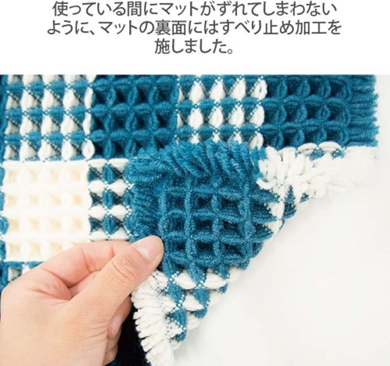 オカトー(Okato) Ag+抗菌ワッフルバスマット(チェックブルー)