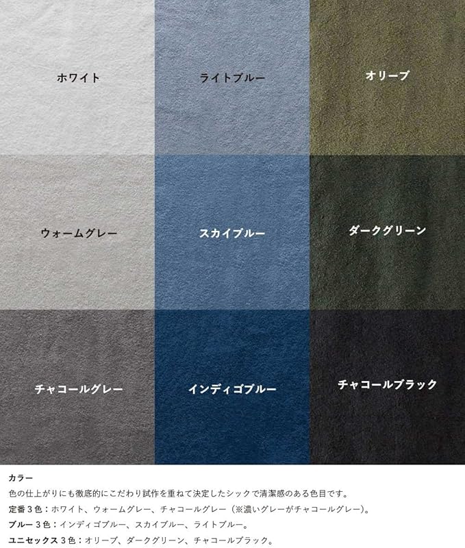 【注意】使用中パイル糸が引き抜けた場合すぐに引き抜けた糸をハサミで切ってください。タオルの特性を保つため、家庭用柔軟剤のご使用はお避け下さい。