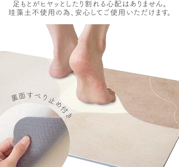 珪藻土製と違い、足元がヒヤッとしたり割れる心配もないので快適にご使用頂けます。