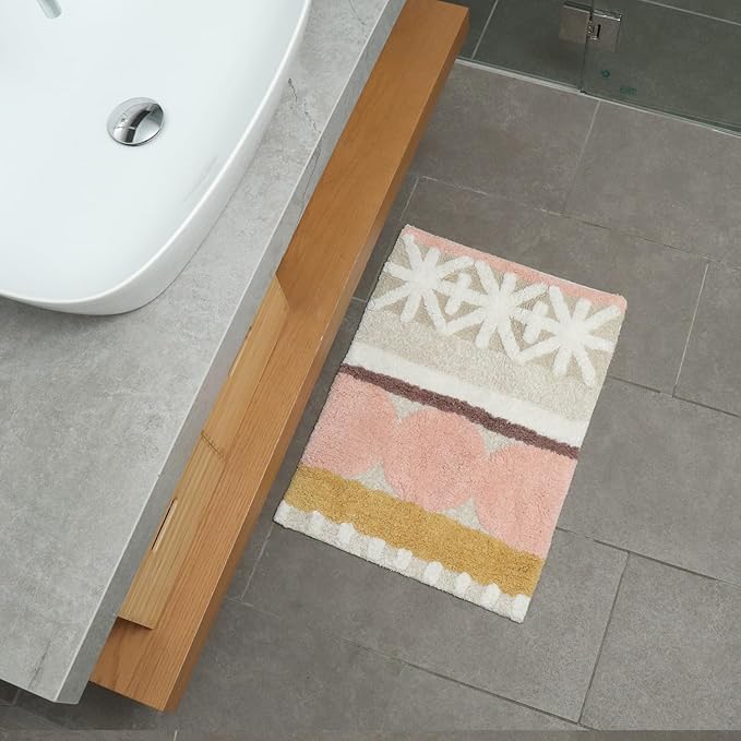metoa メトア バスマット ムオト MUOTO コットン100% 45 60cm [玄関マット インテリアマット 足拭きマット 滑り止め付 風水 おしゃれ シンプル 洗える ウォッシャブル] (ベージュ)