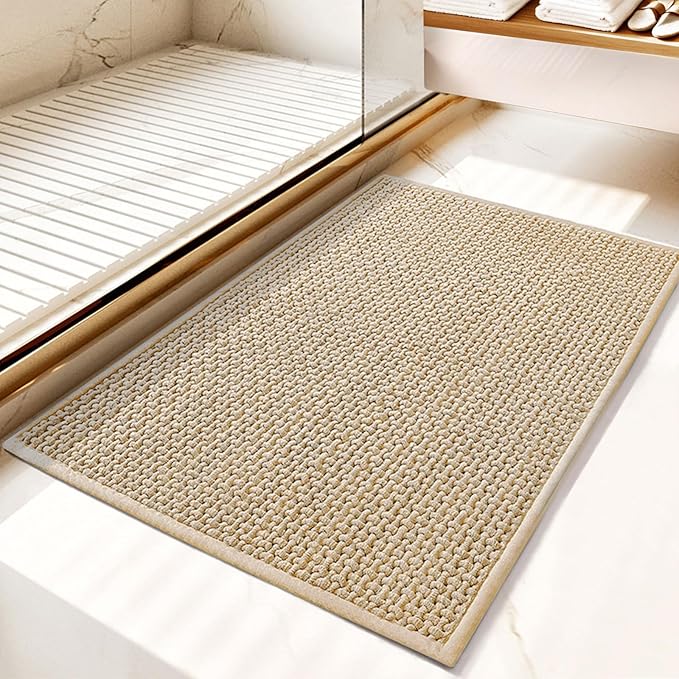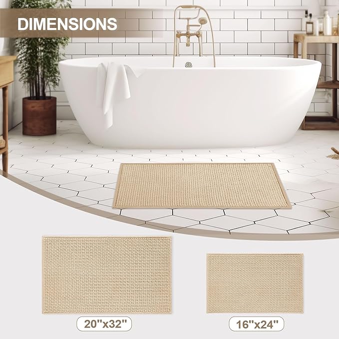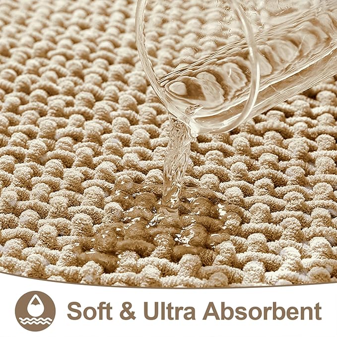 MOSISO バスマット シェニール バスルーム ラグ、16インチx24インチ(約40cmx60cm)、滑り止め プラッシュ シャギー バス カーペット、シャワー シンク 洗面台用、エクストラ ソフト 吸水性 ワッフル お風呂マット(ベージュ)