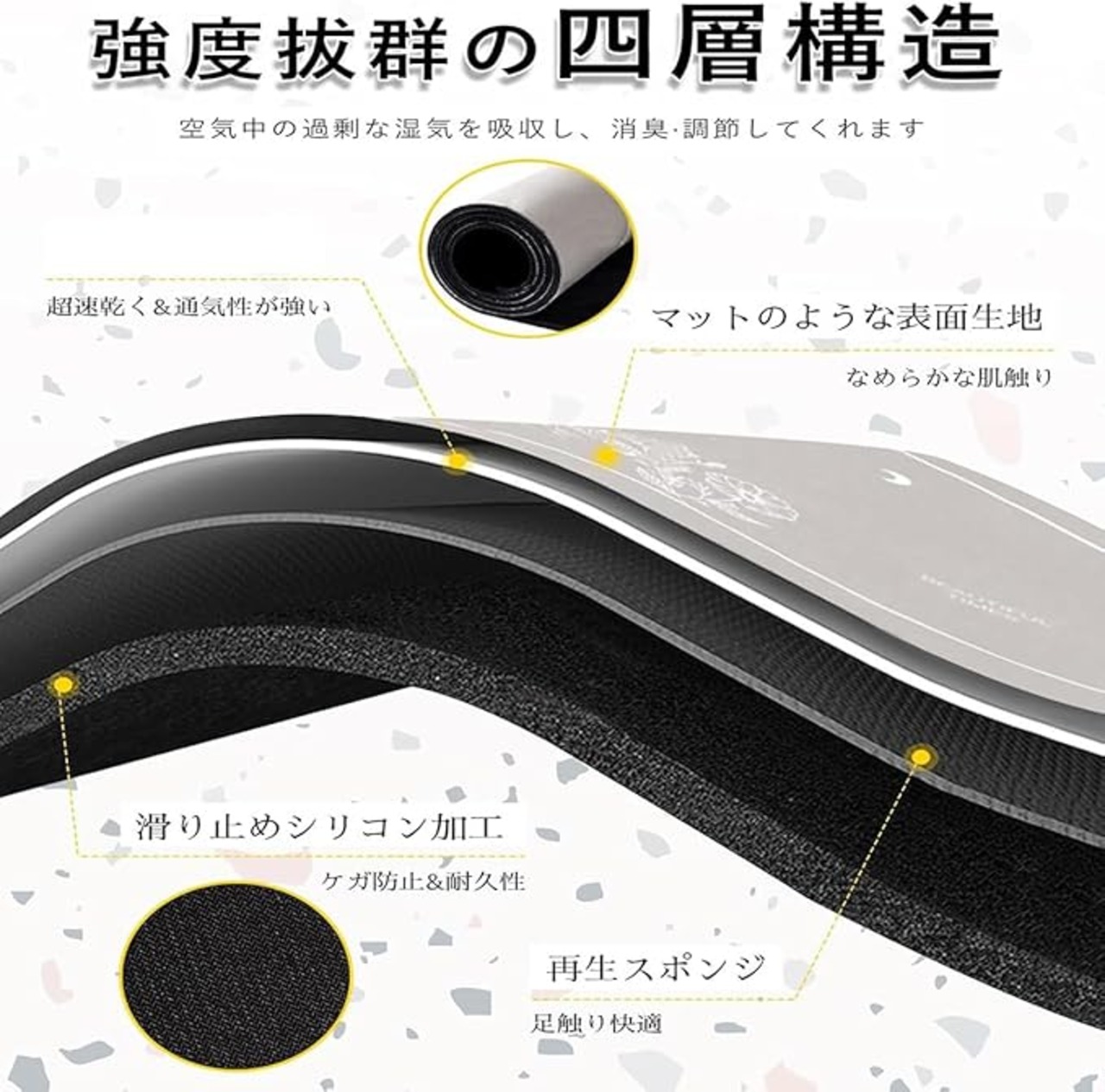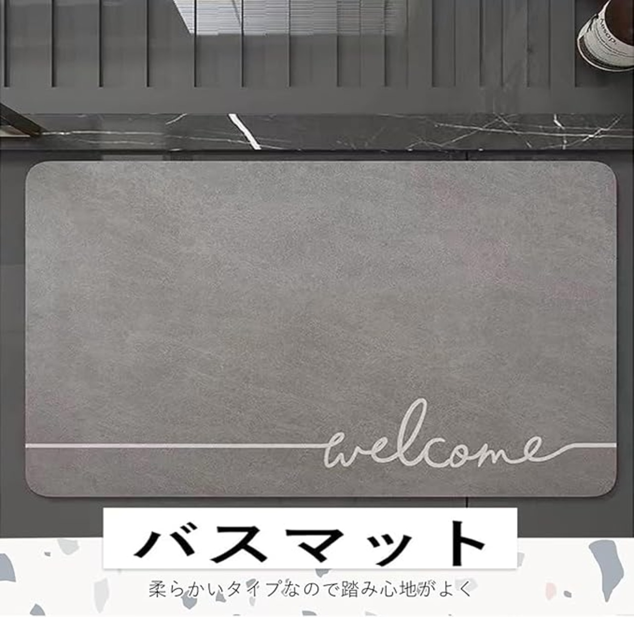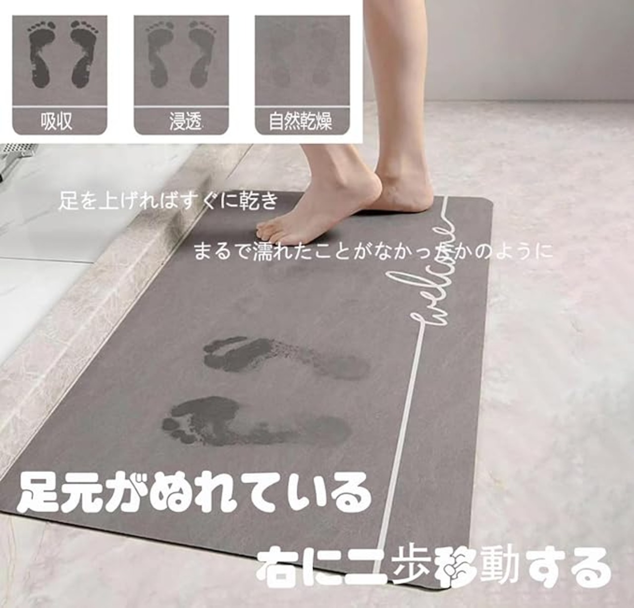 速乾バスマット 40 60cm 吸水・防水・滑り止め バスルームマット グレー – お風呂上がりに快適 速乾 足元さらさら