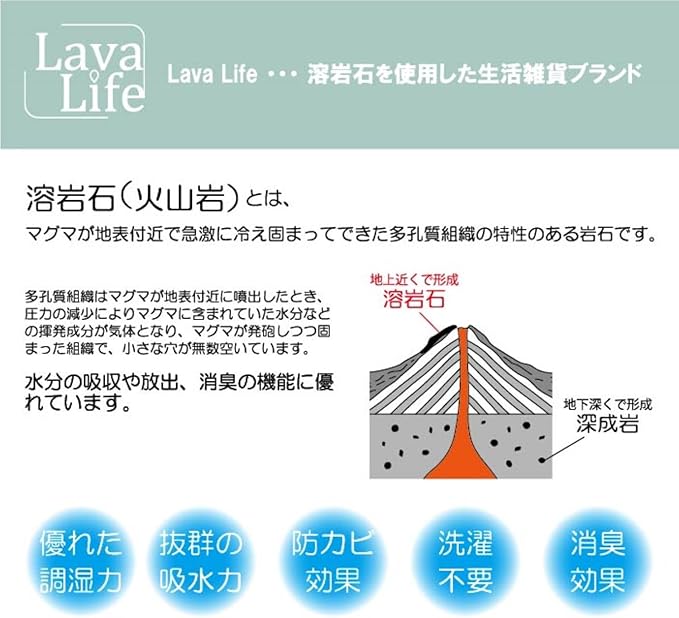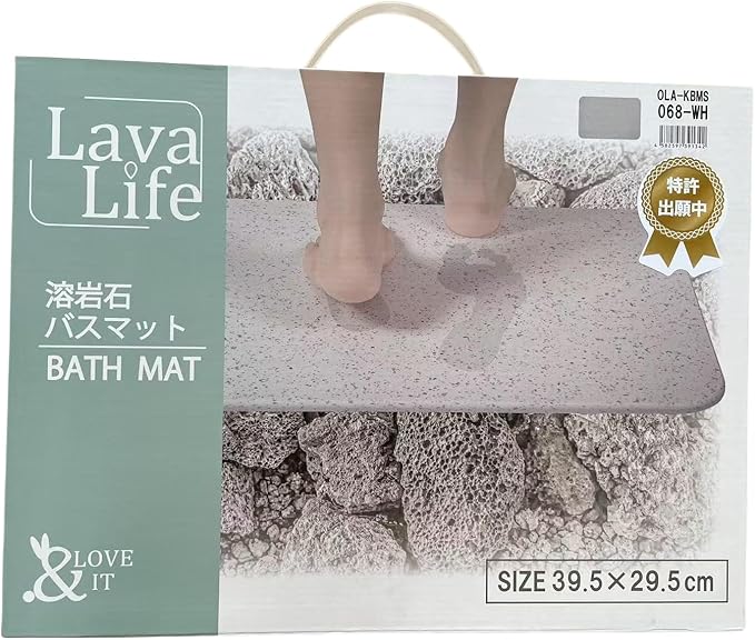 バスマットは次の時代へ。Lava Lifeは次世代の素材”溶岩石(火山岩)”を使ったバスマットです。表面には小さな穴が無数空いており、水分の吸収や放出、消臭の機能に優れています。
