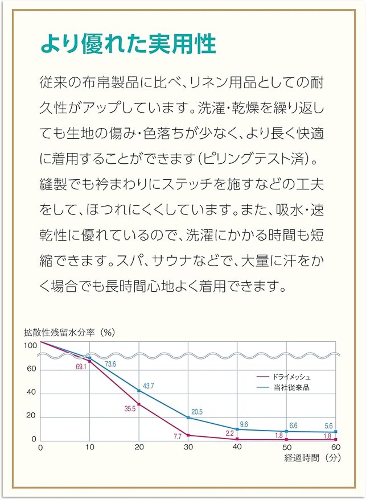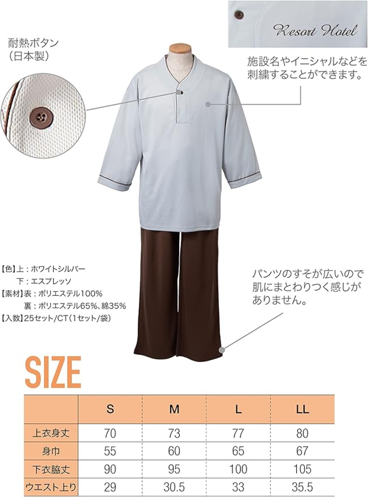 ・ホテルや旅館、スパ、サウナや温泉など、リラックスして過ごす空間にぴったりのウェアです。