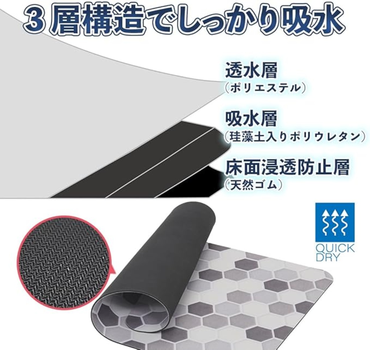 珪藻土配合の優れた速乾性があるやわらかマルチマット