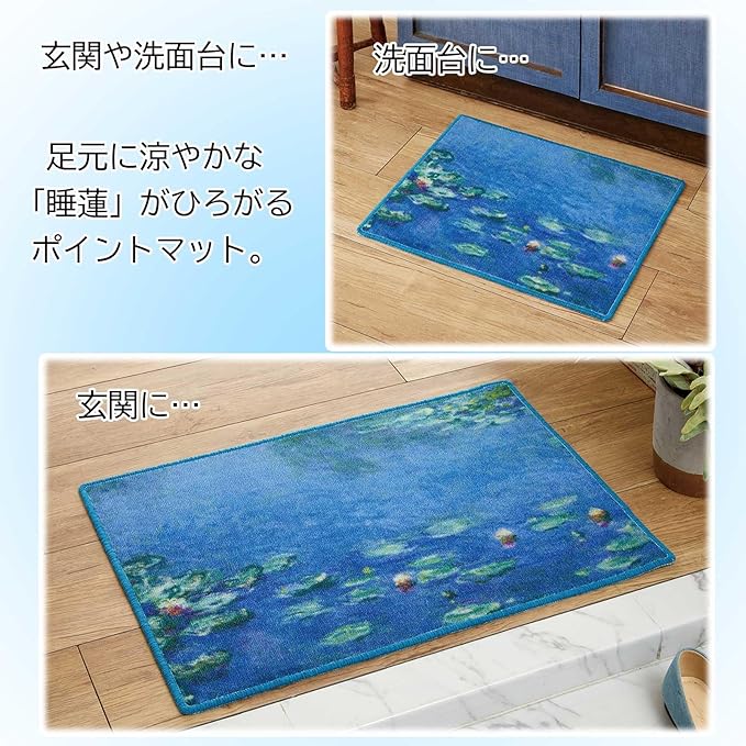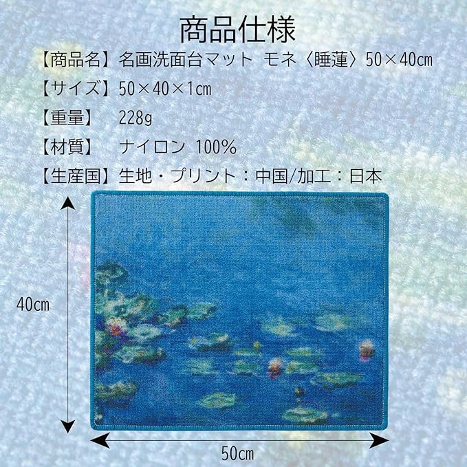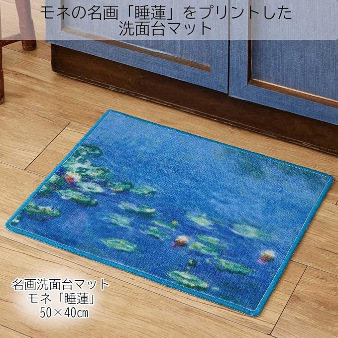 平津産業(Hiratsu Sangyo) 名画 洗面台マット モネ 睡蓮 50 40㎝ 日本製 滑りにくい加工 洗える おしゃれ 大判 北欧 お風呂 浴室 かわいい 足ふき ドア 掃除 室内 大きめ 92149900