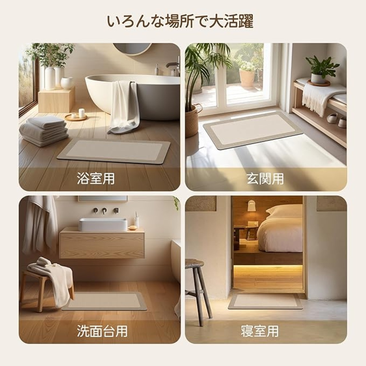 【様々な場所に大活躍】浴室だけではなく、キッチンや洗面所、玄関などいろんな場所で活躍できる。 バスマット、水切りマット、玄関マット、浴室足ふきマット、ソファーマットなど、様々な使い道がございます。ペットのいるご家族でも安心してご使用いただけます。コンパクトで収納しやすく、どこに置けばラクチンです。 手洗い可能、洗濯機を使用して丸洗い可能なので、いつも清潔に保たれています。 (ご注意: 洗濯機の乾燥機能は使用しないでください)