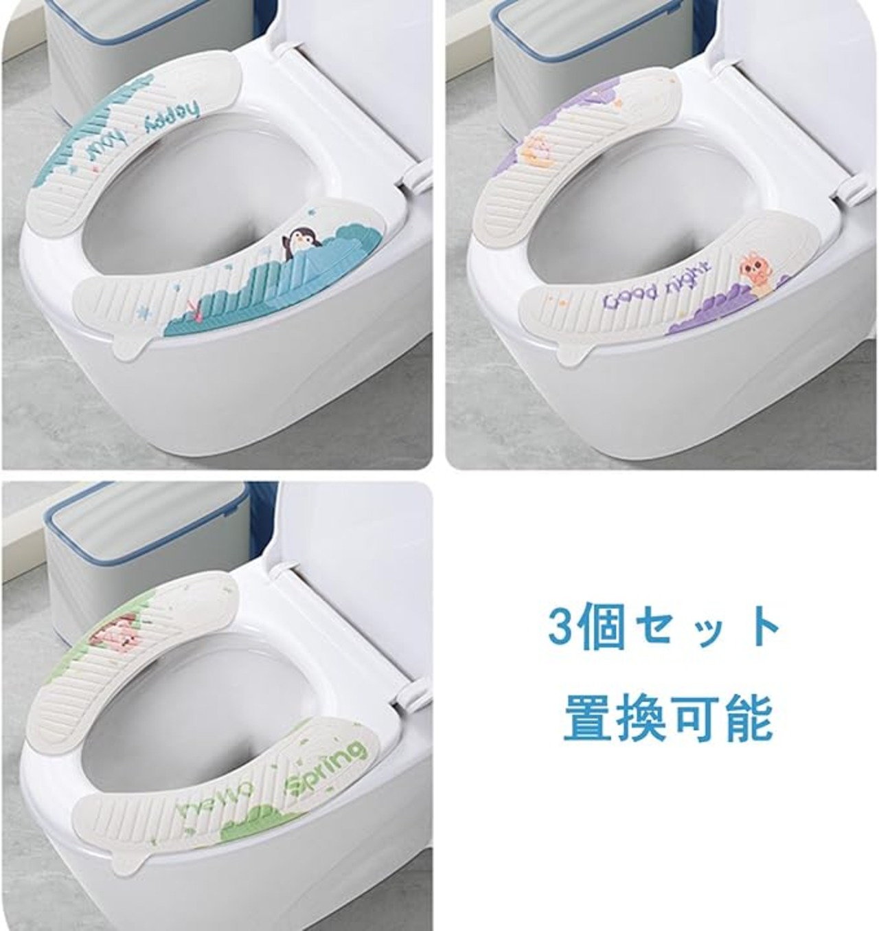 便座シート クッション トイレカバー 三色セット 貼るだけ 厚手 四季 全形状対応 跡残らず 抗菌 防臭