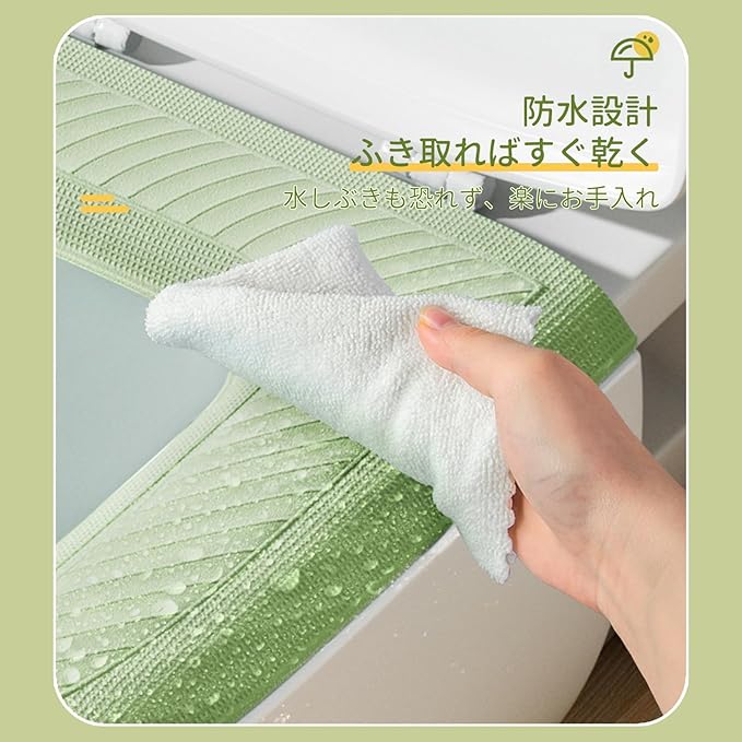 便座カバー 便座シート 便座クッション 貼るタイプ 拭ける EVA 防水 トイレパッドクッション おしゃれ 便器マット マジックテープ付き U型 O型 四角 V型便座対応 洗濯可能 再利用可能 緑