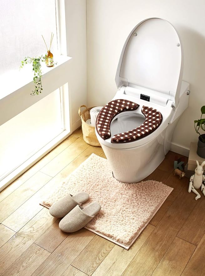 ピタッと便座に乗せるだけ、トイレがソファに早がわり!ソフトな肌触りのマイクロファイバー製です。
