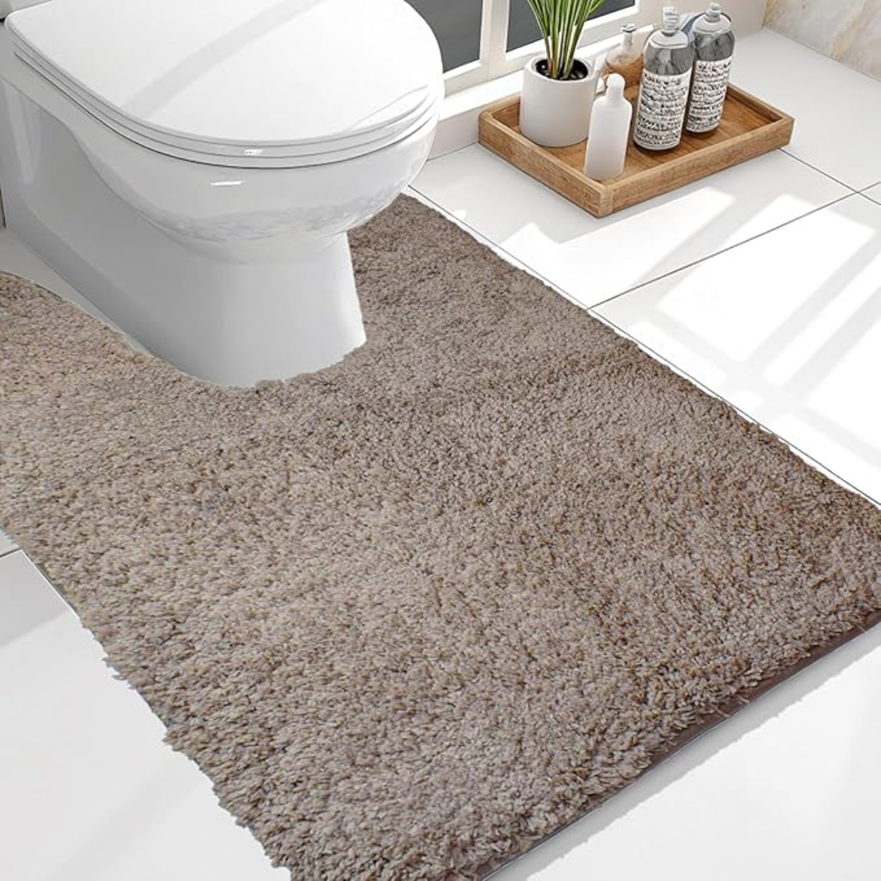 トイレマット トイレ足元マット ふわふわ/洗える トイレまっと 北欧 トイレ 敷物 おしゃれ ト イレカーペット 吸水速乾 滑り止めといれまっと 無地 トイレ用マット 80x60cm (コーヒー色)