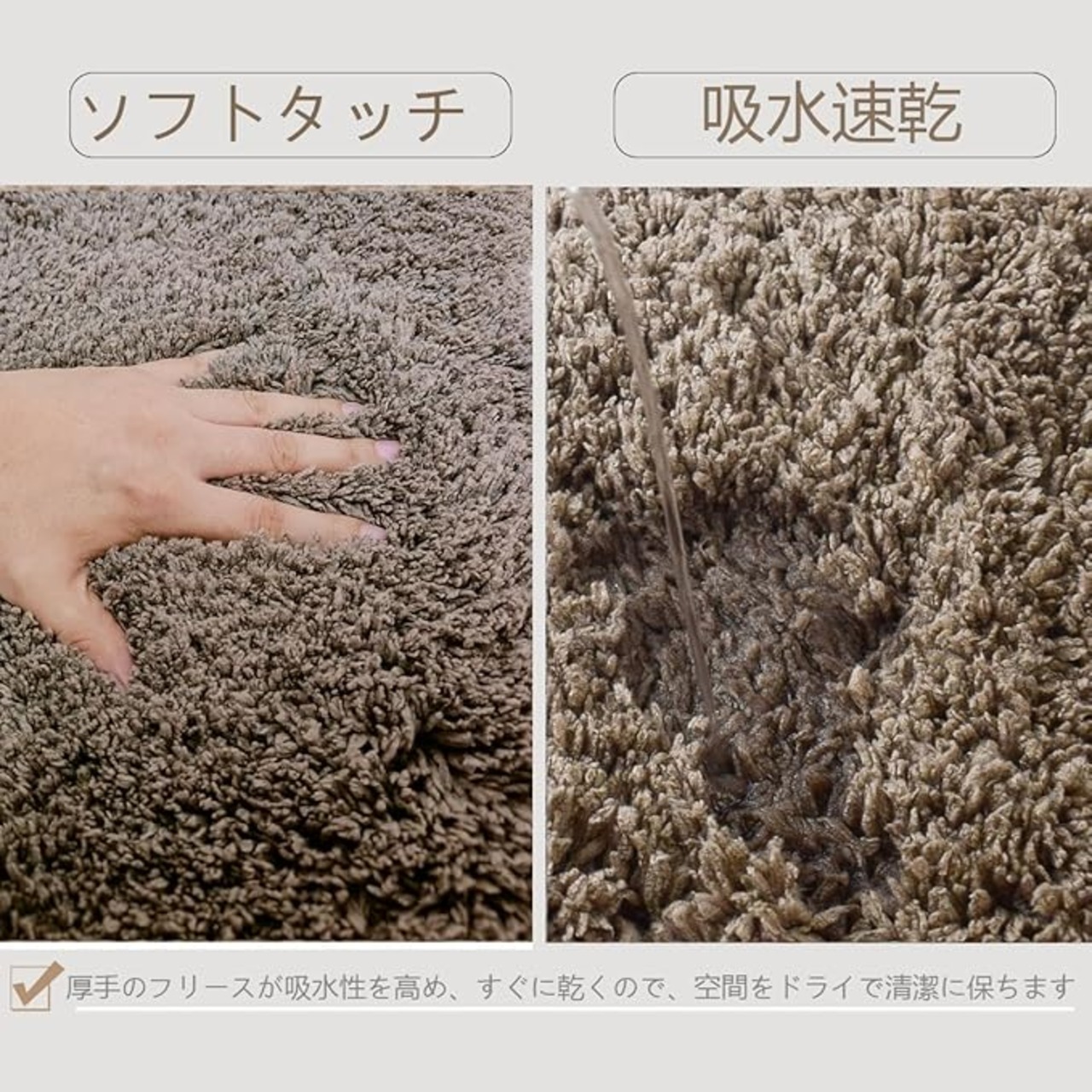 【ふわふわで柔らかい手触り】ふんわり柔らかな肌触り:表面のケーキベルベットは長さ25mmの 平たく均一で、1本1本が極細の伸縮マイクロファイバーで構成されており、触り心地が良いです 。 同時に、表面のケーキベルベットと底面の不織布も吸水性に優れ、すぐに乾くので、空間をド ライで清潔に保ちます