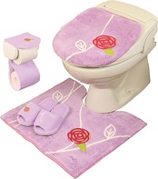 ※セット 1:共用ふたカバー 2:普通サイズトイレマット(約55cm 60cm ) 3: ペーパーホルダーカバー 4:スリッパ