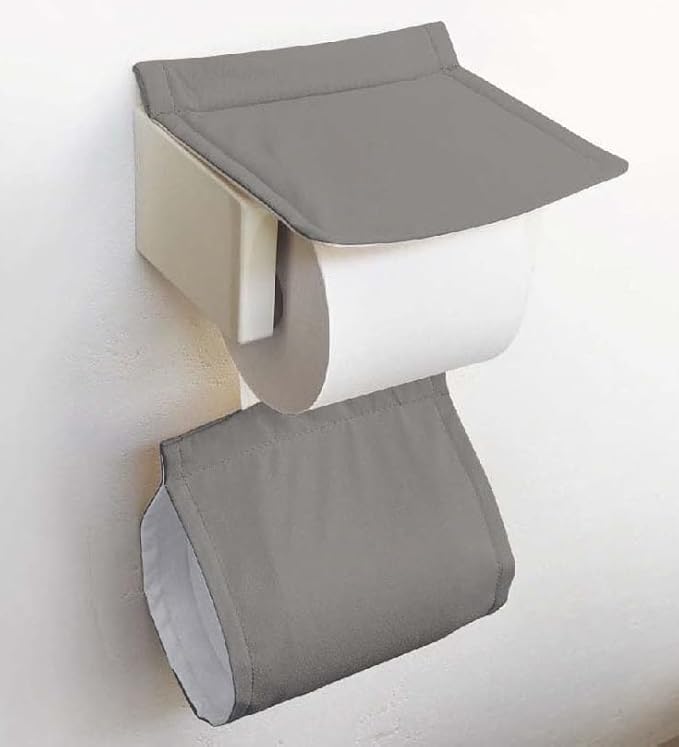 トイレマット・フタカバー:ソポ モノトーン スリッパ・ペーパーホルダーカバー:ナチュラル グレー