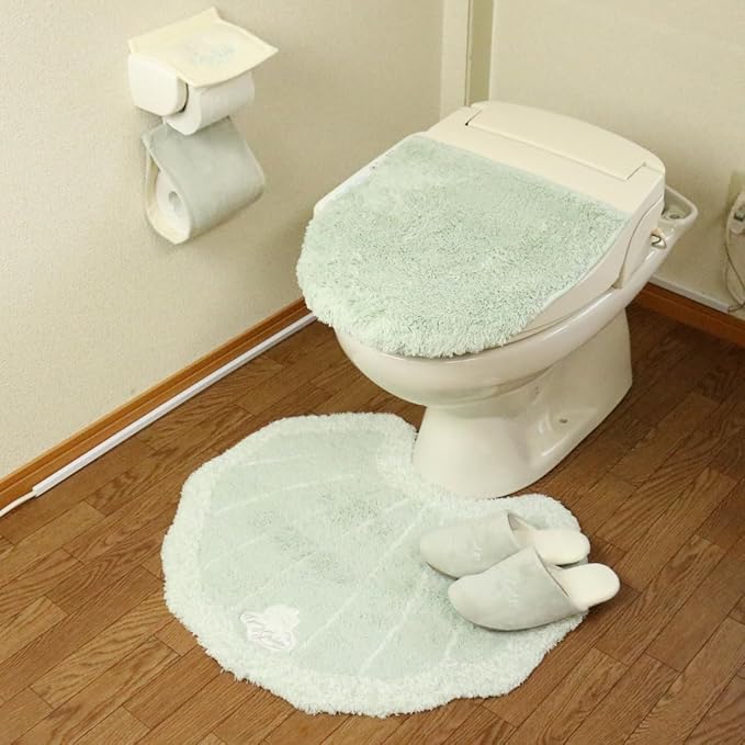 トイレマット、吸着型フタカバー、スリッパ、ペーパーホルダーカバーの4点セットです。 くすみのある淡いパステルカラーに癒される。 パステルカラーのマットなので柔らかい雰囲気でどこに敷いてもなじみやすい。 「merry」=楽しいという意味の通り、楽しく柔らかな空間をつくります。 丸洗いOKで吸水力に優れた糸を使用しており刺繍部分は銀糸で施すなど細部までこだわっています。 裏面にはすべり止め加工が施されているのでずれにくく快適にお使い頂けます。 全てのアイテムは丸洗い可能なので汚れてしまったら洗濯機でお手入れがOK。 カラー:グリーン トイレマットサイズ:約55 65cm 材質:パイル部/ポリエステル100% ※裏面すべり止め加工つき フタカバーサイズ:約 縦 55 横 65cm 素材・材質:パイル部/ポリエステル100% ペーパーホルダーカバー サイズ:約幅17 奥行き16 高さ0.5cm (上部の寸法) 重量:約50g 素材・材質:ポリエステル・レーヨン・その他 ※一本支柱タイプのトイレットペーパーホルダーにはご使用いただけません。 スリッパ サイズ 約24~26cm 素材・材質: 表生地:ポリエステル・レーヨン・その他 共通 生産国:中国 メーカー:オカトー(株) ※自動開閉機能付きのトイレでは自動開閉機能はお使いになれません。 ※ペーパーホルダーカバーは、上下連結フックが差し込めないタイプのペーパーホルダーには使えません。 ※当商品は衛生商品ですので、返品をお請けできません。 ※ 【お洗濯をする場合のご注意点】 ・乾燥機はご使用にならないで下さい。(熱により変形・損傷の恐れがあります) ・柔軟剤や漂白剤はご使用にならないで下さい。 ・ドラム式などの一部の形式の洗濯機はご使用できない場合があります。 洗濯機の取扱説明書をよくご確認の上、洗濯して下さい。 ・家庭用洗剤をご使用の上、洗濯機での丸洗いは洗濯ネットをご使用下さい。 ・初めは多少毛が抜けますので、他の物とは別にして下さい。 ・この製品に使用しているゴムは直射日光に弱い性質があります。必ず陰干しにしてください。 ●当商品は、通販用梱包の為、フタカバーの台紙を取り外しております。
