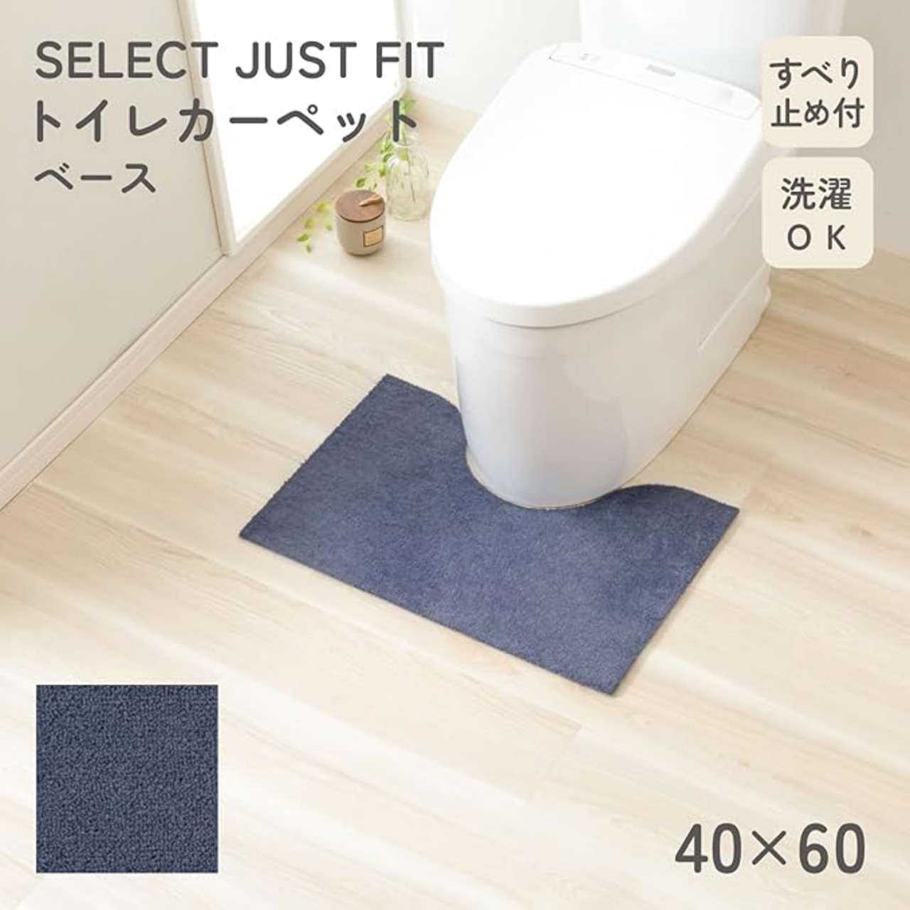 カキウチ トイレ カーペット ベース トイレマット 幅60 奥行40 高さ1cm ネイビー 滑り止め加工 フリーカット可能 洗濯機で丸洗い可能 SELECT JUST FIT
