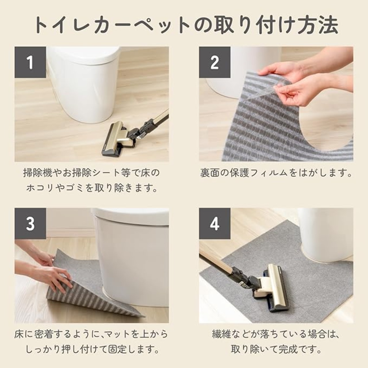汚れた部分だけお洗濯。お手入れ簡単トイレ用カーペット。裏面は特殊スベリ止め可能でズレにくく、スベリにくいので安心・安全。