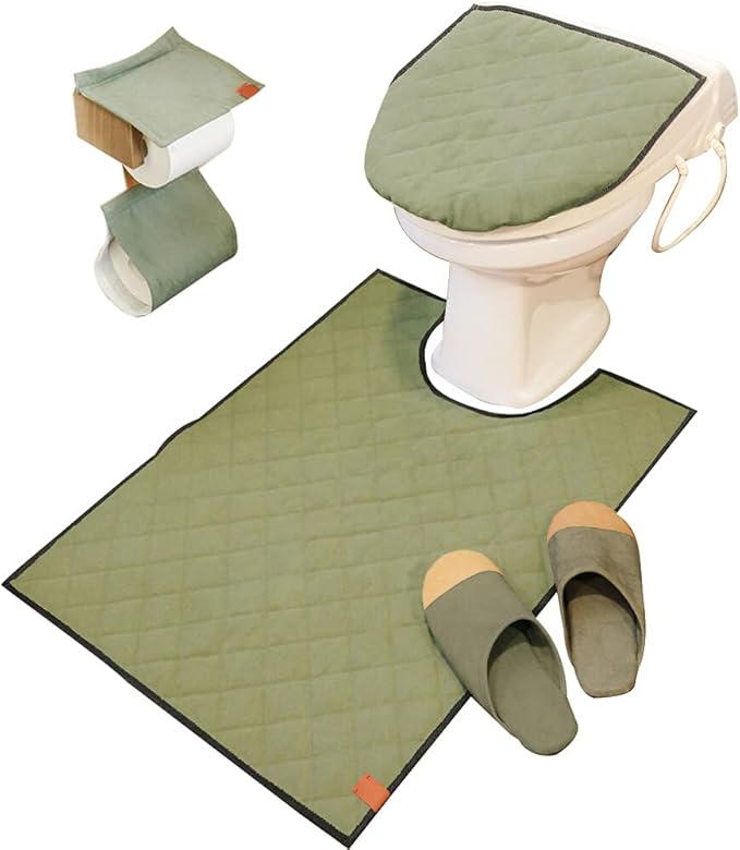 オカトー(OKATO) CANVAS キルティング トイレ3点セット ロングトイレマット 便座カバー フタカバー ペーパーホルダーカバー おしゃれ 洗える シンプル 無地 兼用 おくなが キャンバス ビンテージ ヴィンテージ O型 U型 兼用 (ベージュ)