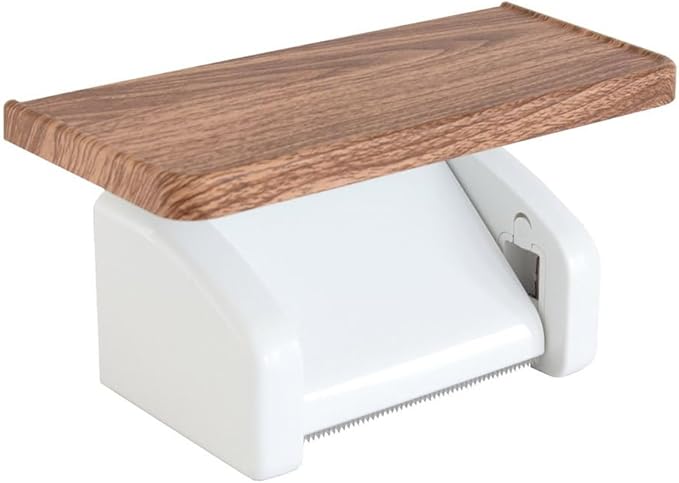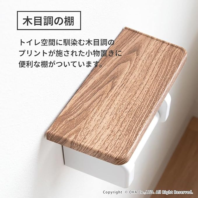 オカ(OKA) ワンタッチペーパーホルダー 木目調棚付き ブラウン (おしゃれ かわいい 紙巻器)