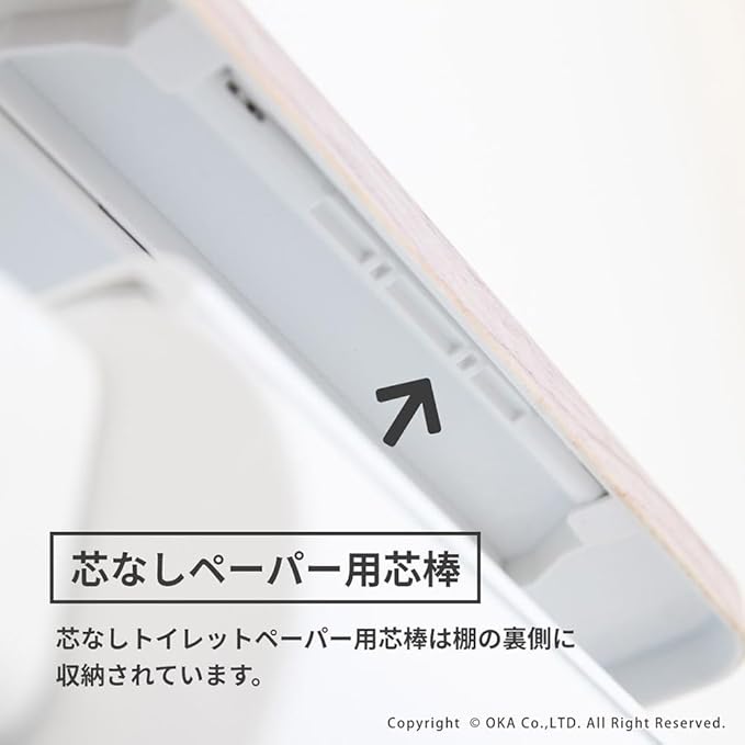長年人気のワンタッチペーパーホルダーから進化した棚付きができました。大きめの棚には置く場所に困っていた、携帯電話や本、消臭雑貨など置くことができます。フタが紙をしっかり押さえる構造で片手でも軽くペーパーがカットできます。芯ありペーパーはもちろん付属の部品で芯なしペーパーにも対応できる優れもの!