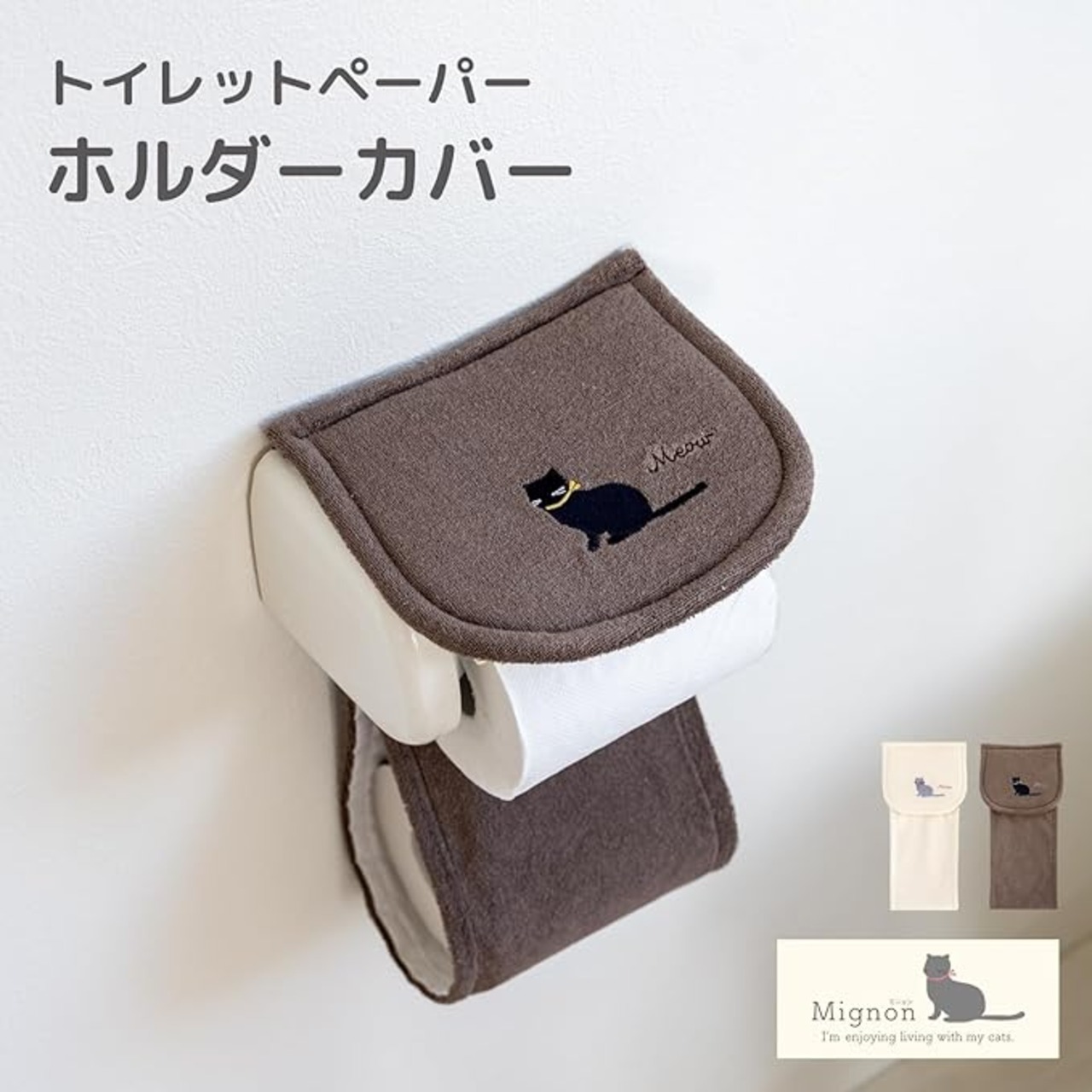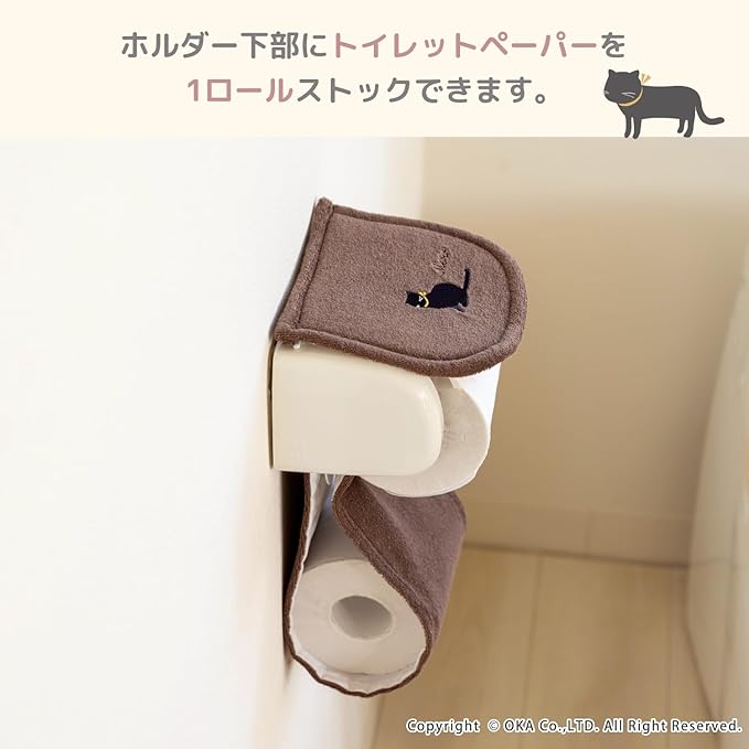 オカ(OKA) ミニョン トイレットペーパーホルダー ブラウン (ねこ かわいい カジュアル 幾何学柄 洗える)
