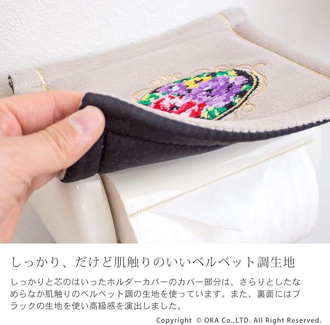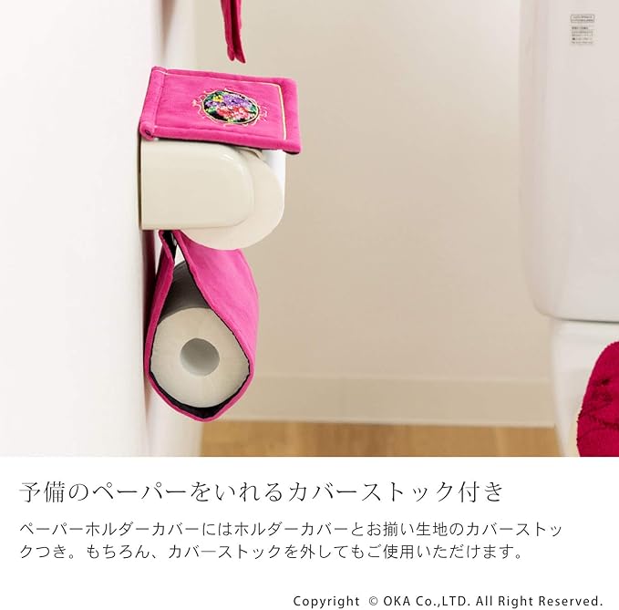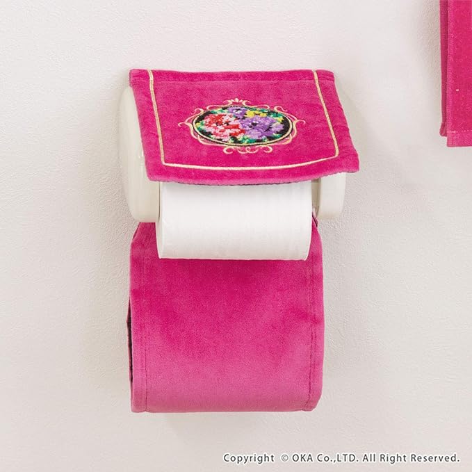 オカ(OKA) ペーパーホルダーカバー ピンク スペア入れ付 シェニールロゼ (エレガント ゴージャス)