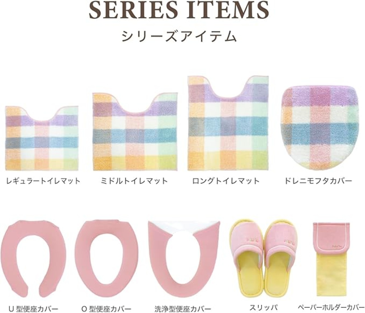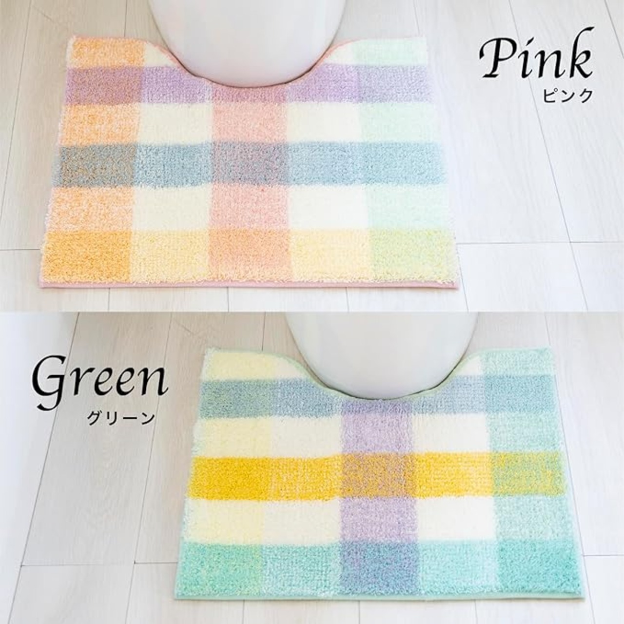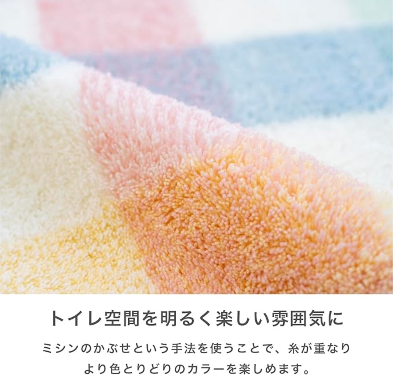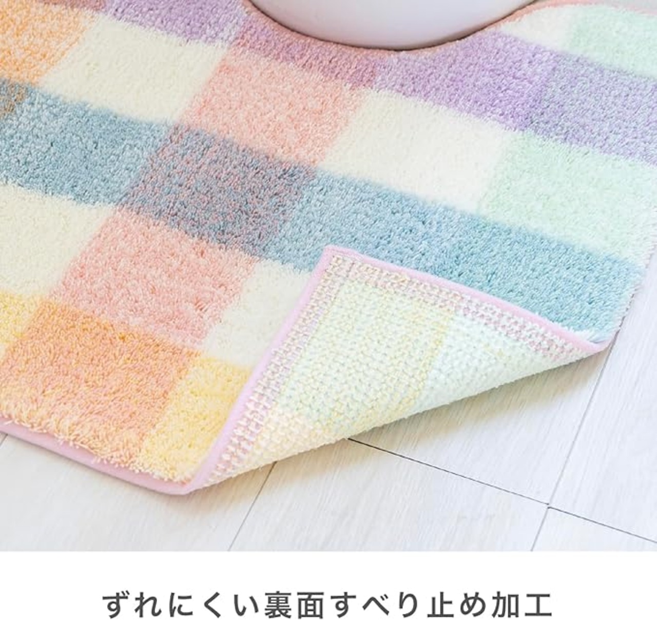 「パレット」トイレマット。かわいらしく、爽やかな色合いが特徴で、トイレ空間を明るく楽しい雰囲気に仕上がりました。すべり止め加工を施しています。