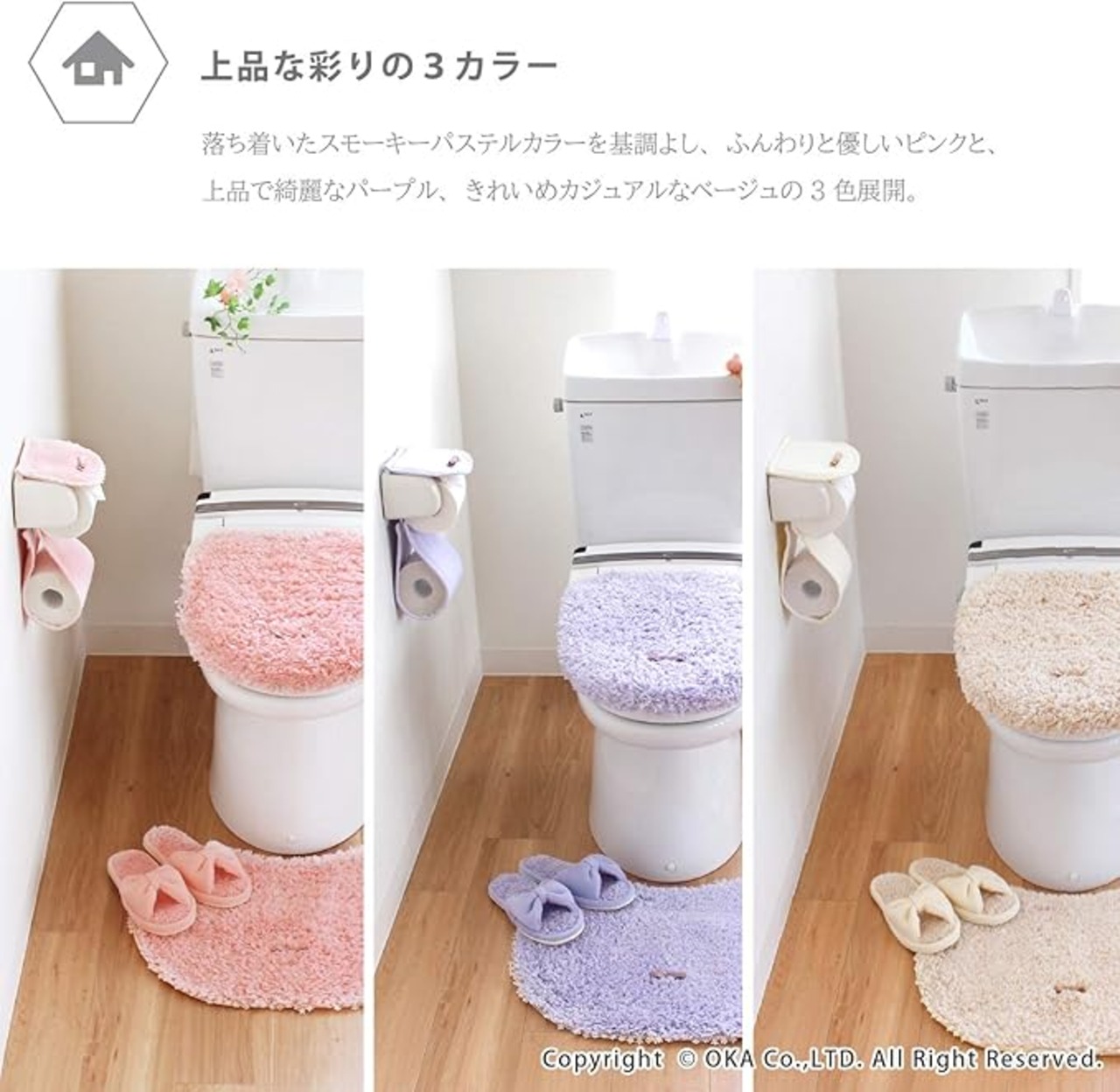 落ち着いたスモーキーパステルカラーを基調とし、ふんわり優しいピンクと、上品で綺麗なパープル、きれいめカジュアルなベージュの3色展開です。