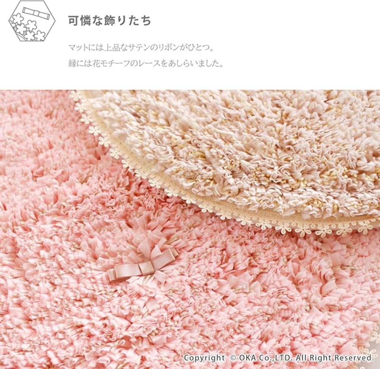 素材:パイル糸 ポリエステル75%・アクリル15%・複合繊維(ポリプロピレン・ポリエチレン)10%、レース ポリエステル100%