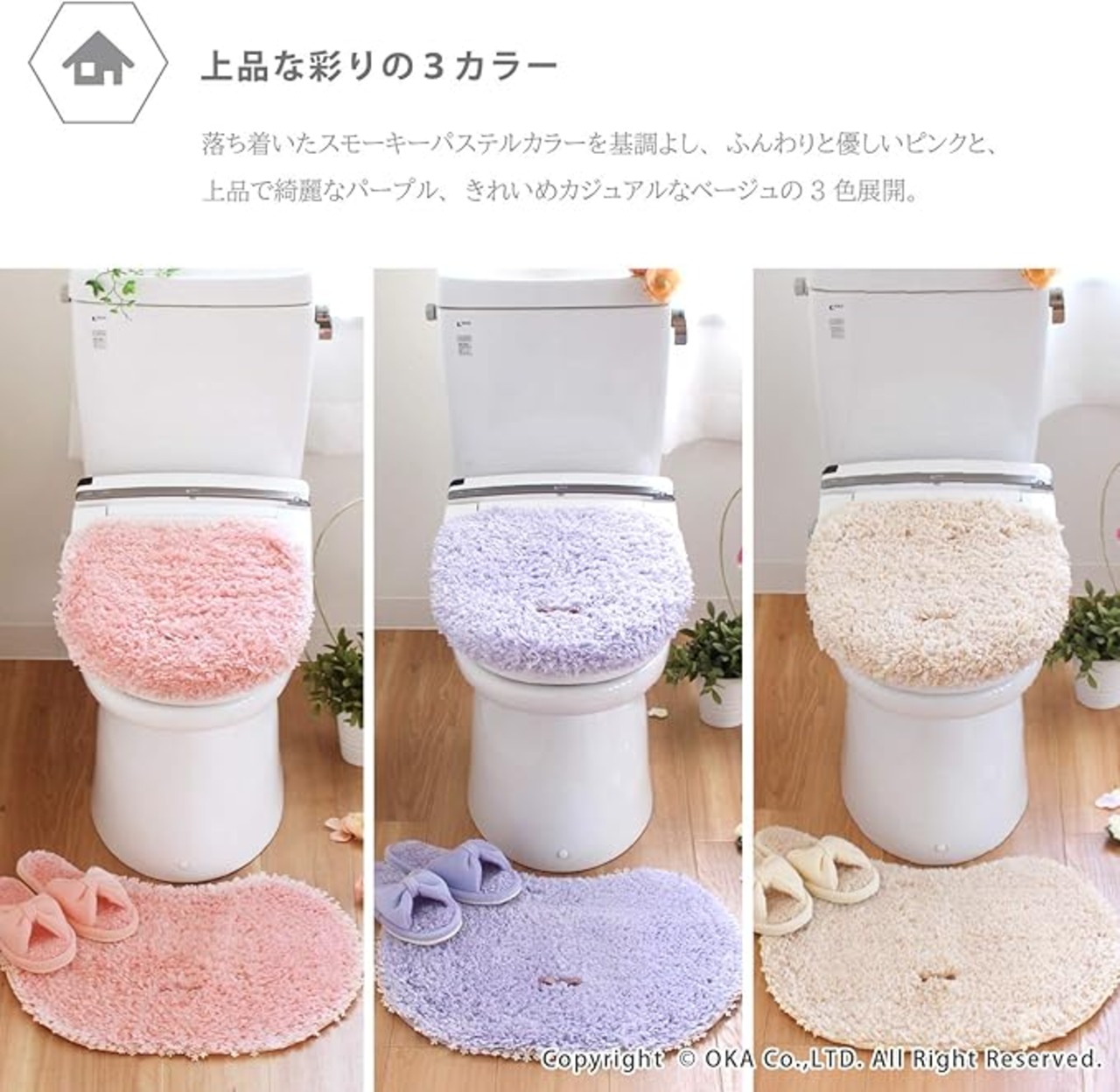 落ち着いたスモーキーパステルカラーを基調とし、ふんわり優しいピンクと、上品で綺麗なパープル、きれいめカジュアルなベージュの3色展開。