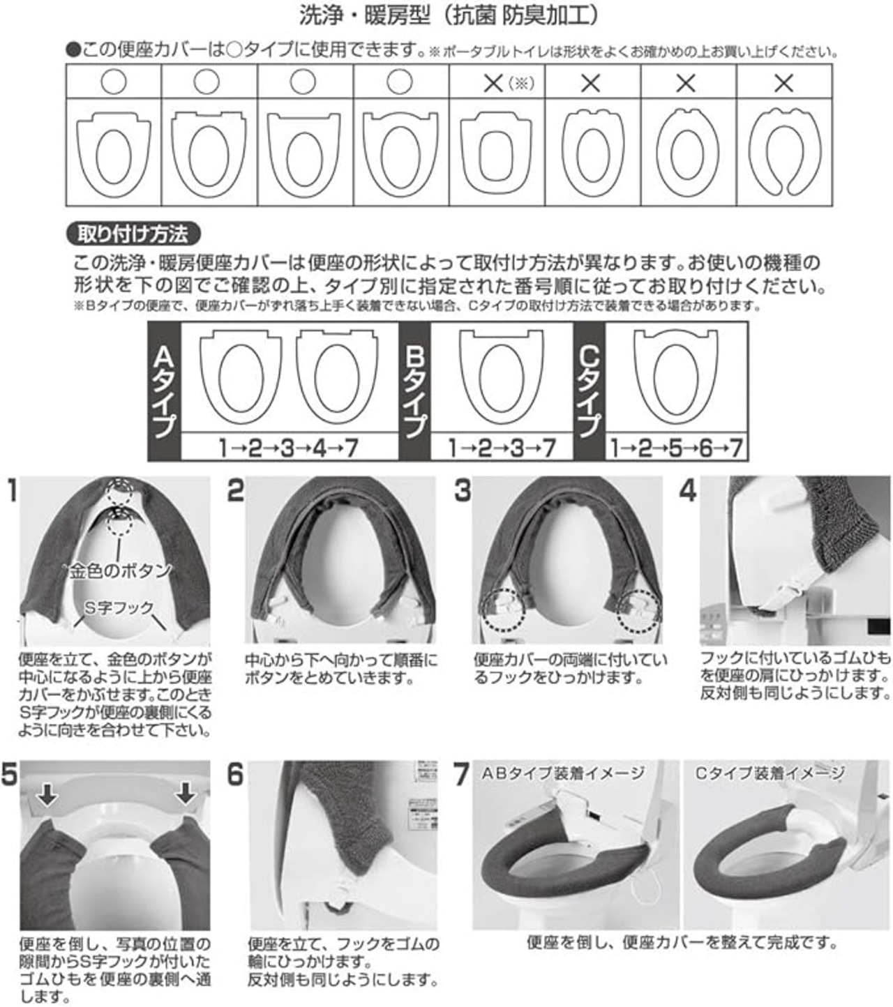 抗菌防臭機能付きで冬は冷たい便座、夏はベタベタする便座をカバーする事で快適に座る事が出来ます。