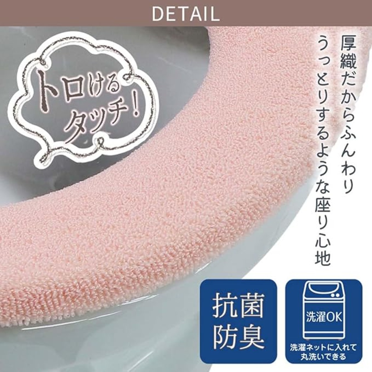 ループパイルがお尻にやさしい、ほわふわのトロけるタッチの厚織タイプの洗浄暖房便器用便座カバーです。抗菌防臭機能付きで冬は冷たい便座、夏はベタベタする便座をカバーする事で快適に座る事が出来ます。洗濯出来ます。
