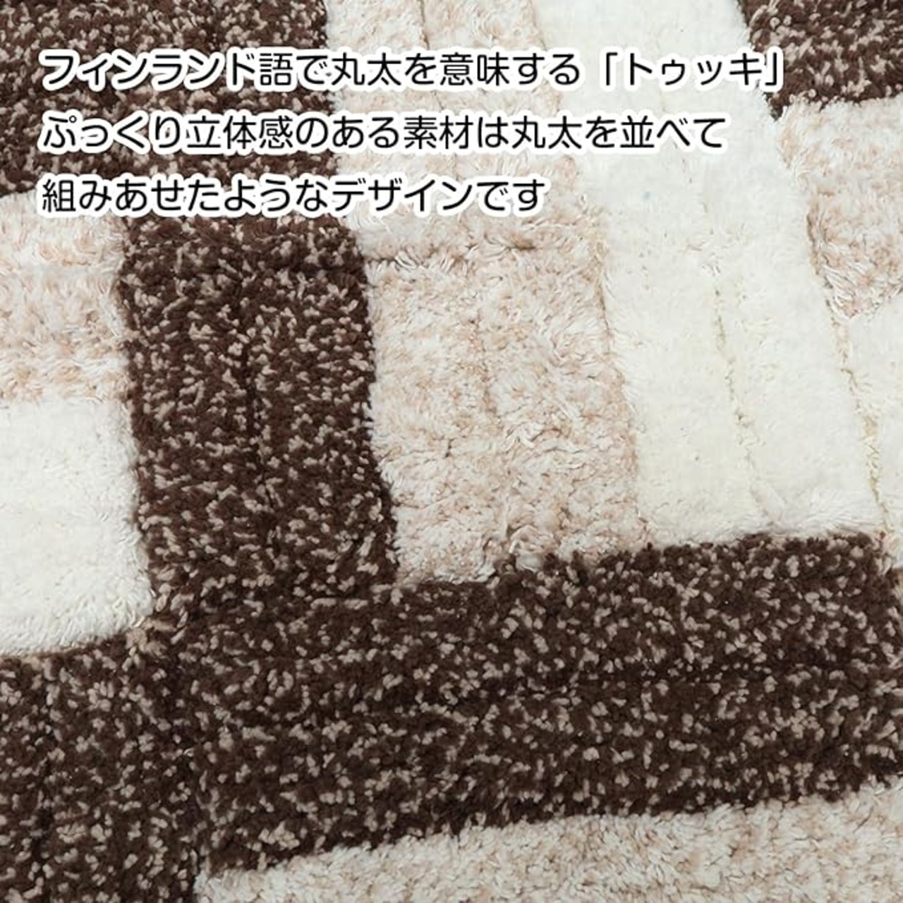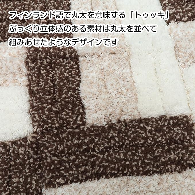 フィンランド語で「丸太」を意味する「トゥッキ」。重ねた丸太を交互に組み合わせたようなデザインのトイレマットです。素材はコットン100%で、風水的にも「木」の気を持つ天然素材の綿は、「水」の気を持つトイレと相性も良いとされています。マットは1600GSM(1平方メーターあたりのグラム数。数値が大きいほど糸の量が多く、高密度で織られているマットの数値)でボリューム感があります。