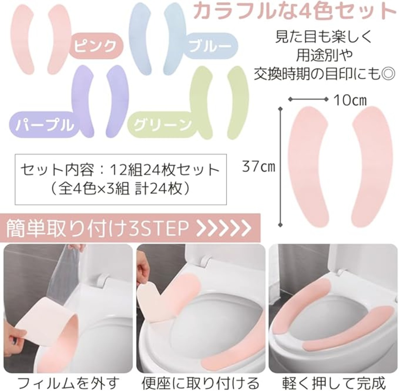 I'm so happy 便座シート 便座カバー 貼るタイプ 使い捨て 洗える o型 u型 カラフル 4色 12組24枚セット