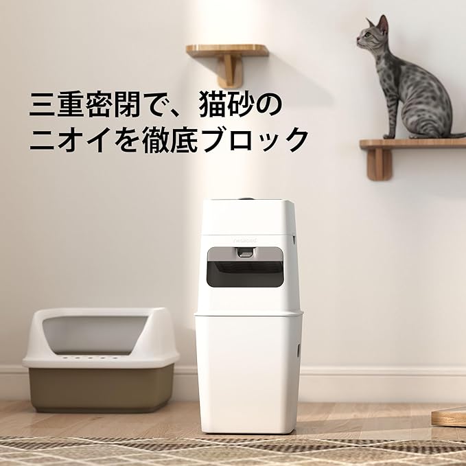 【強力防臭|7層構造の専用袋+トリプル密閉設計】ニオイ漏れを徹底ブロック。7層EVOH素材の専用袋に加え、フタ・投入口・内部構造の3重密閉で、猫砂やオムツのイヤな臭いをしっかり閉じ込めます。