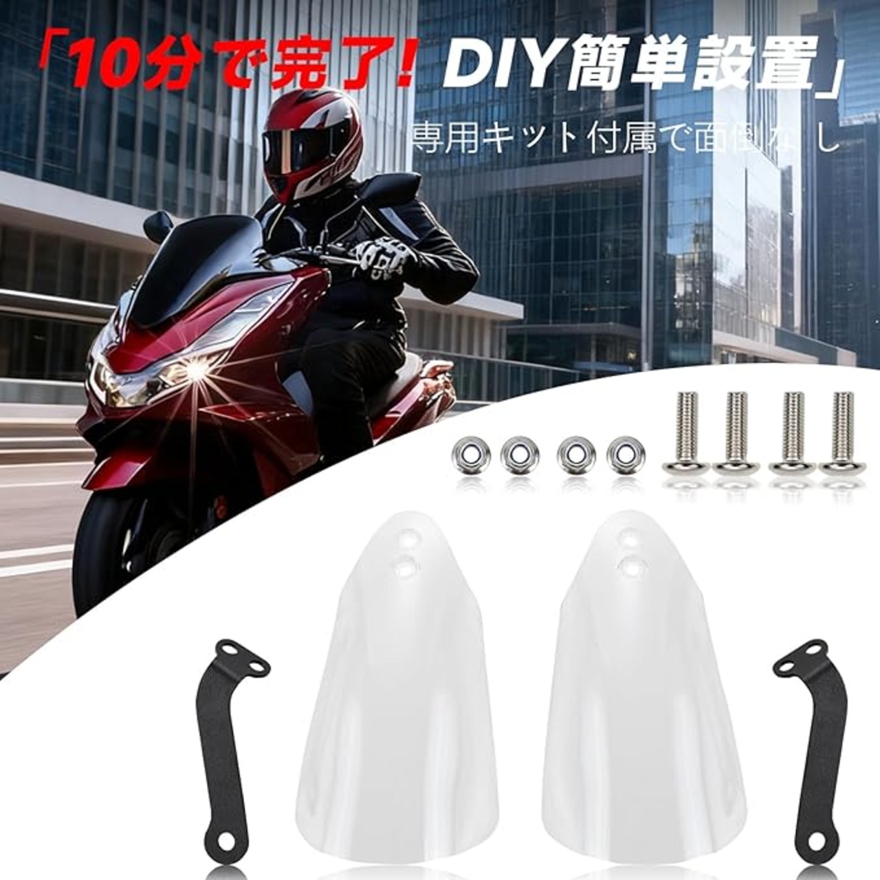 【セット内容】ナックルガード左右ペア+ネジ部品付属。シンプルなデザインで車体にマッチします。